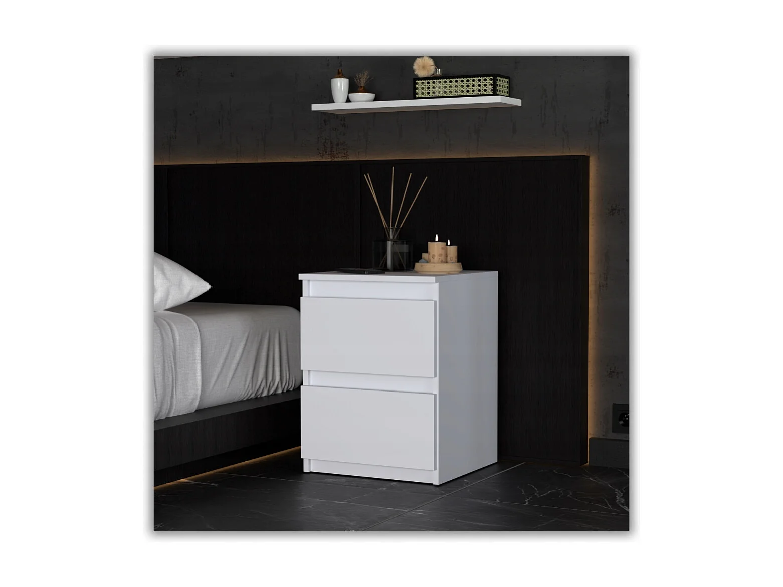 Wit nachtkastje, smal 20 cm, klein compact loft nachtkastje voor slaapkamer
