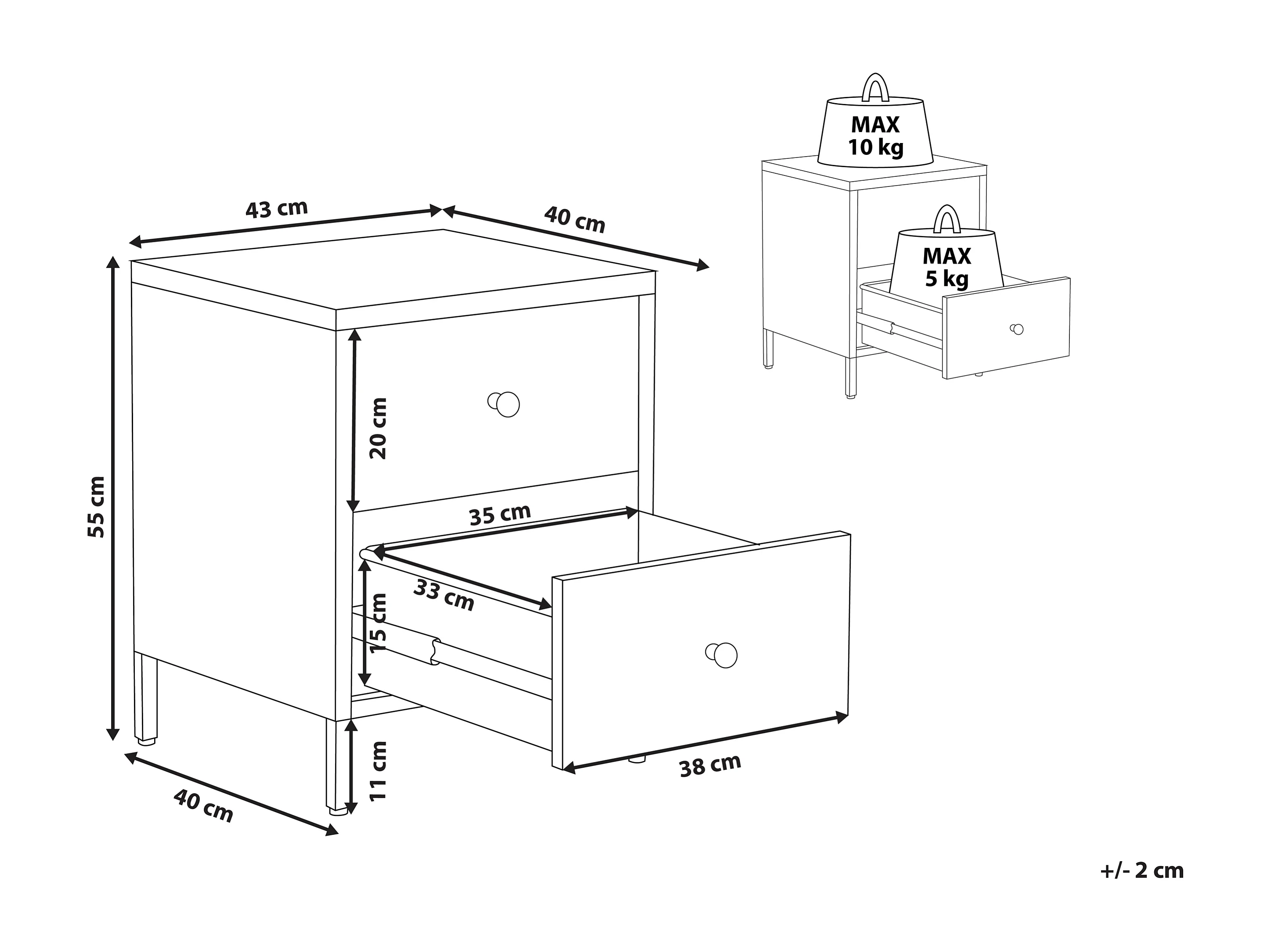 Nachtkastje met 2 lades ALABAMA Wit