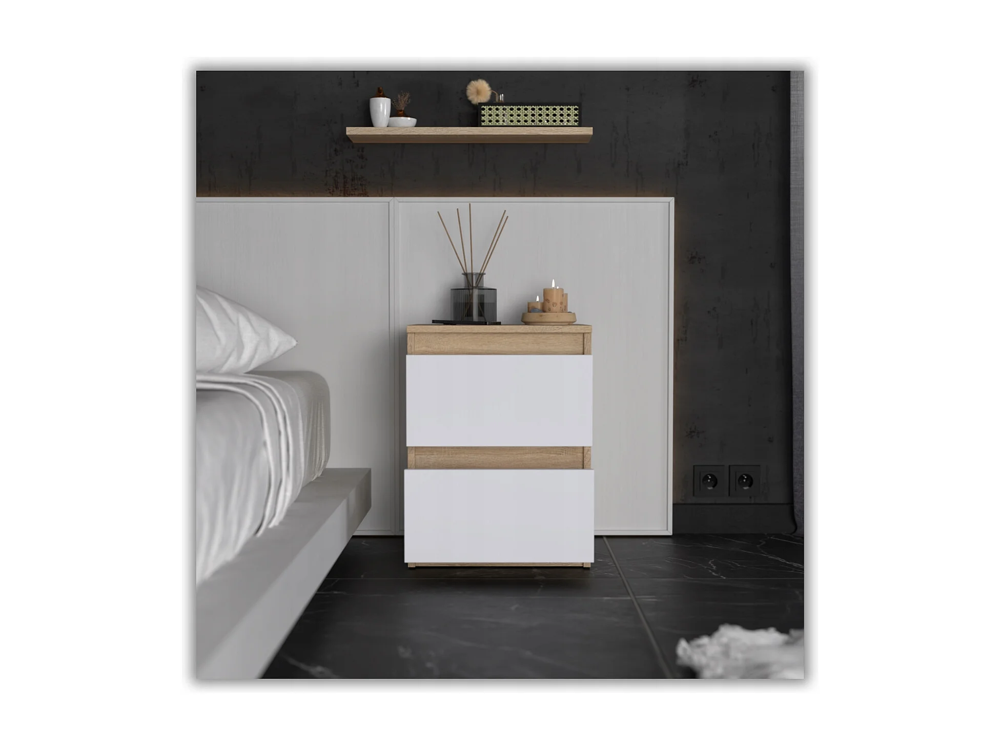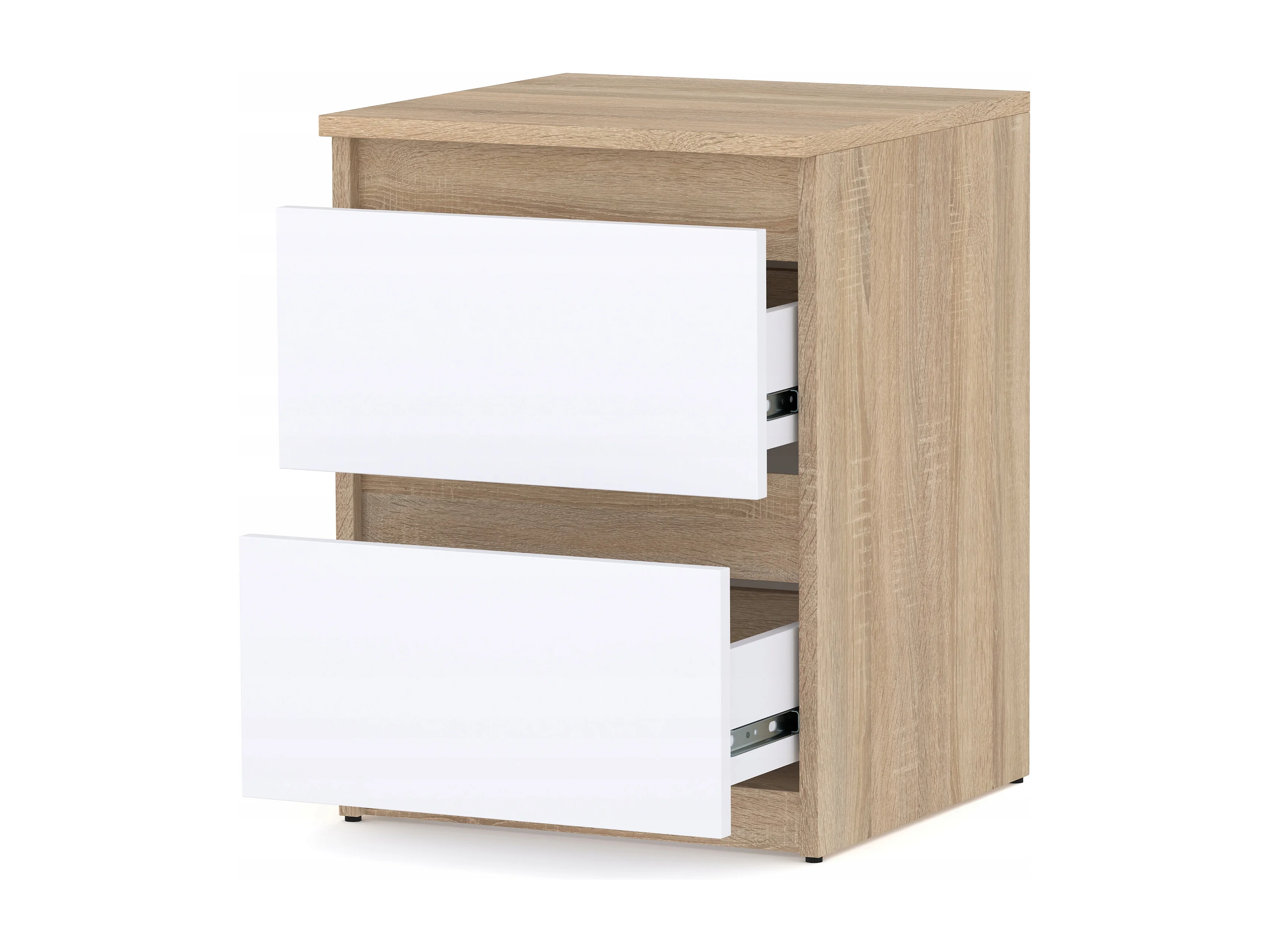 Nachtkastje Wit Sonoma Eiken 40x40x54 cm, met 2 lades, nachtkast voor de slaapkamer