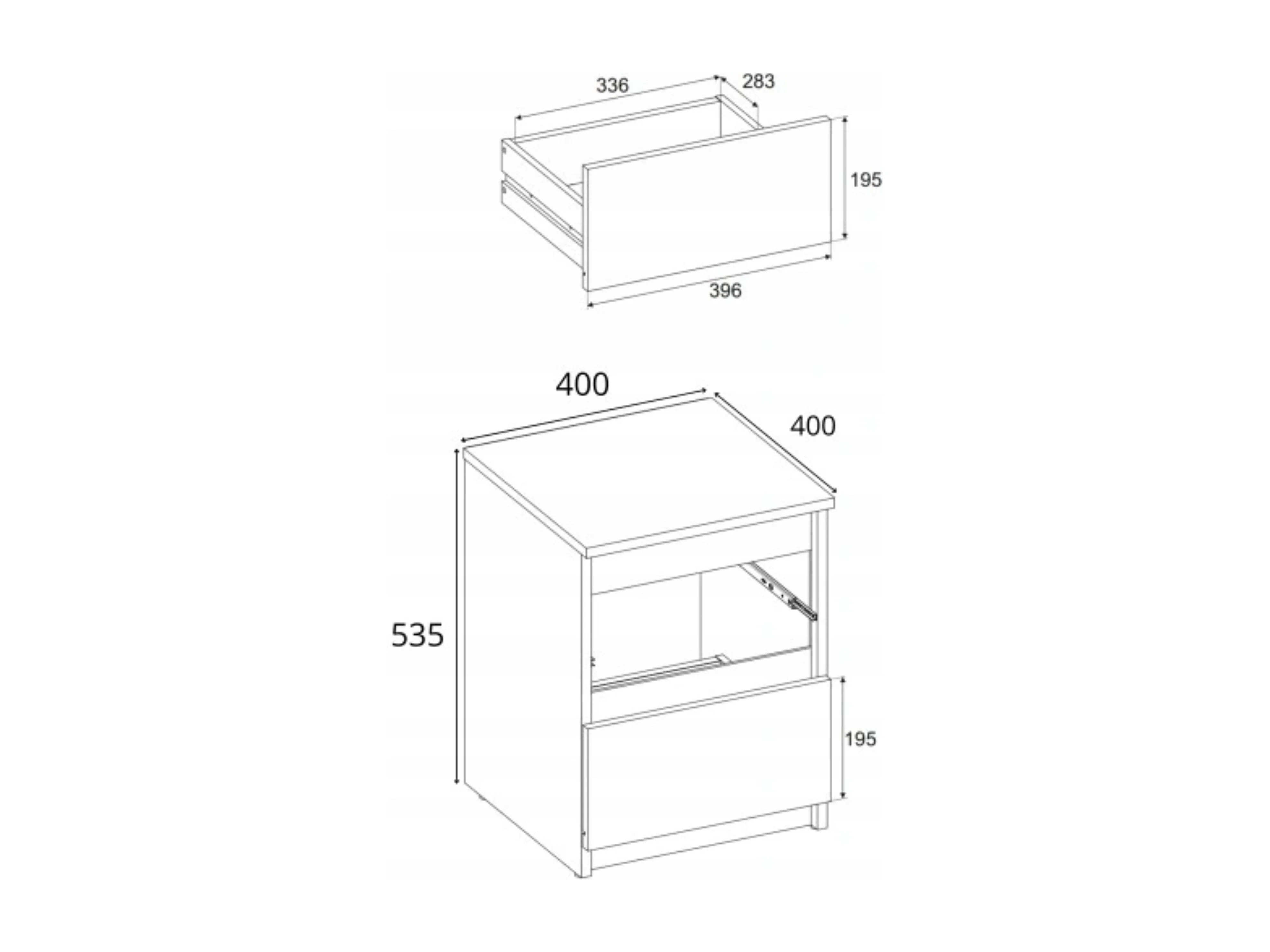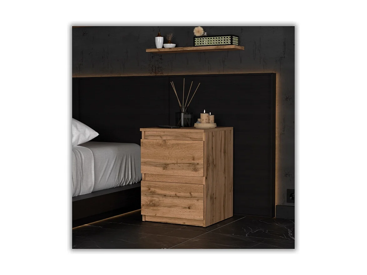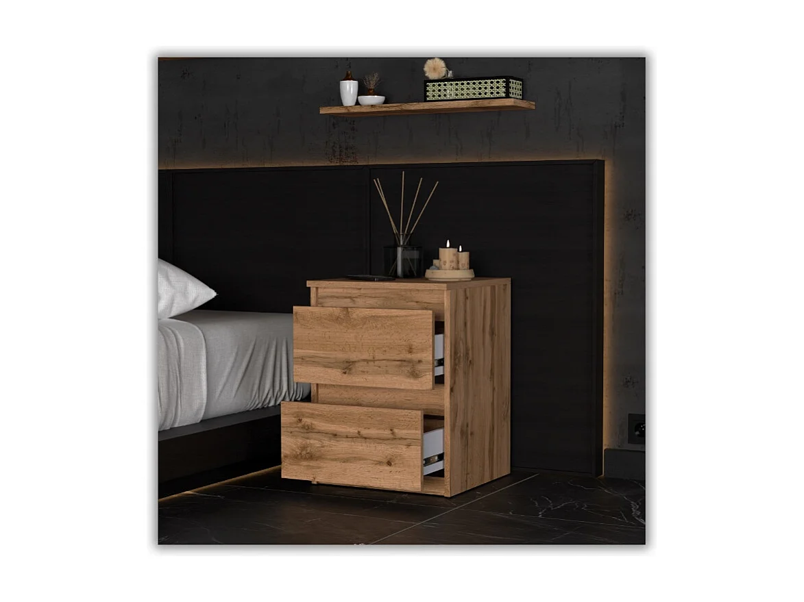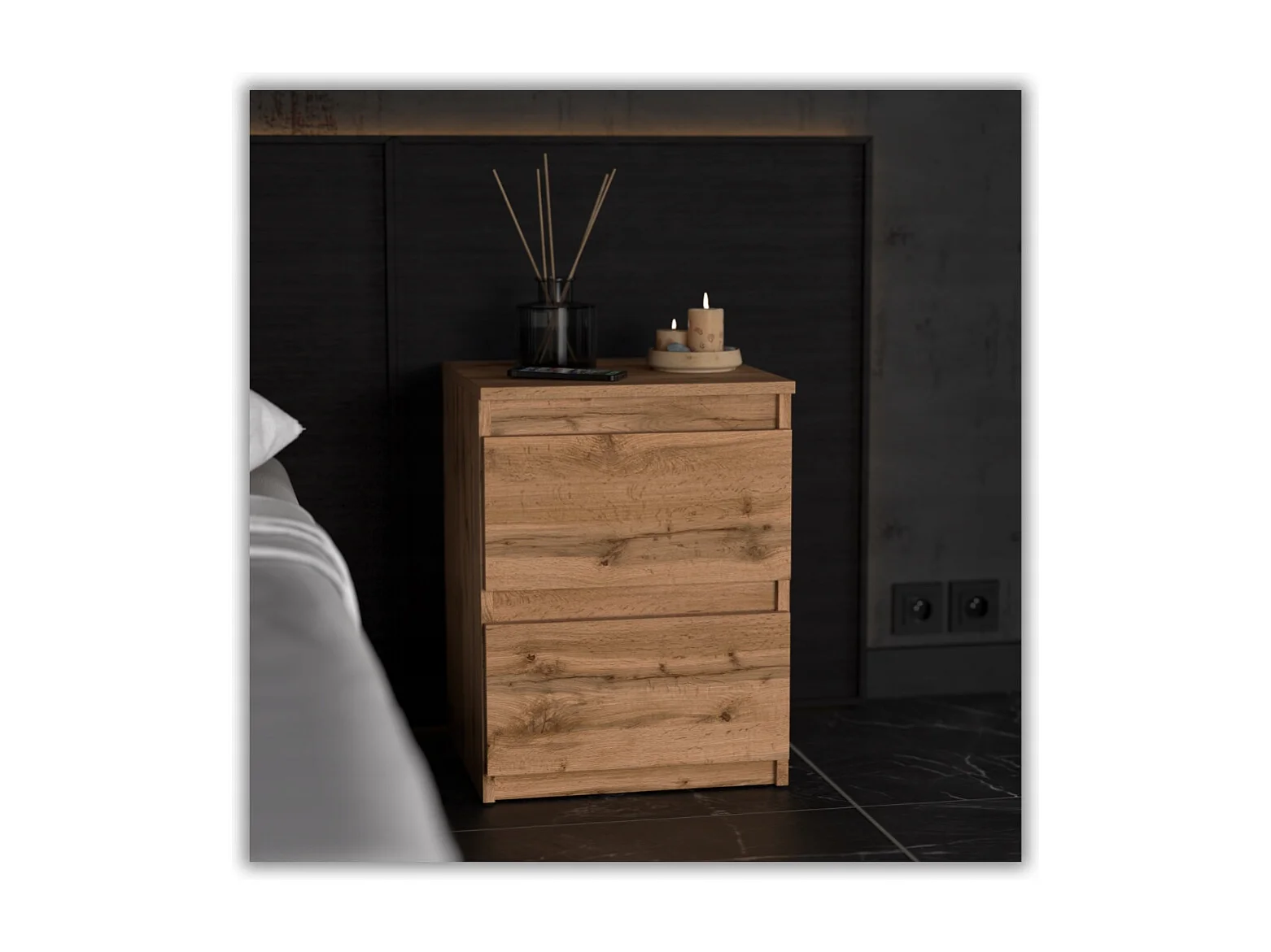 Nachtkastje Wotan Eiken 40x40x54 cm, met 2 lades, nachtkast voor de slaapkamer