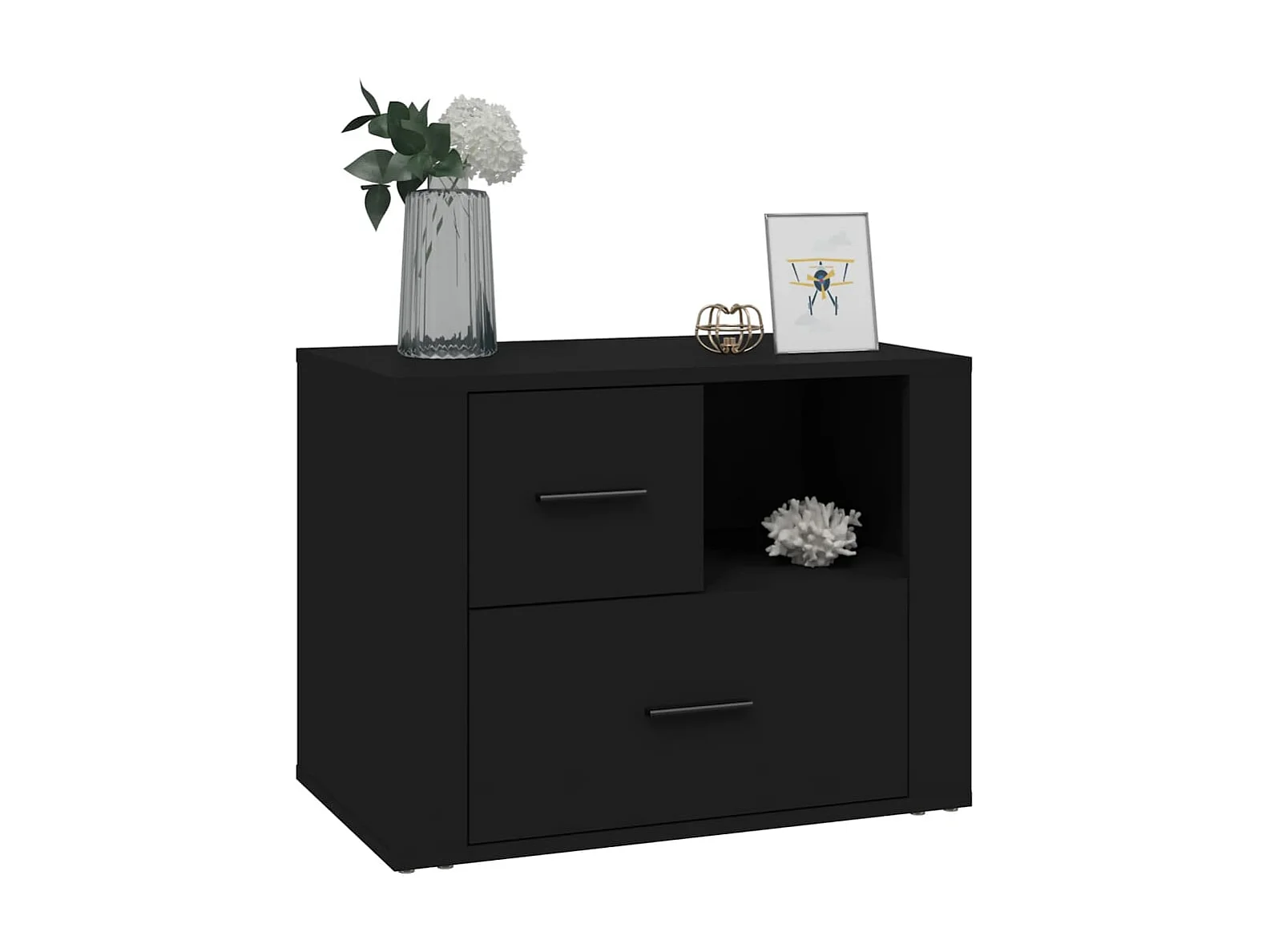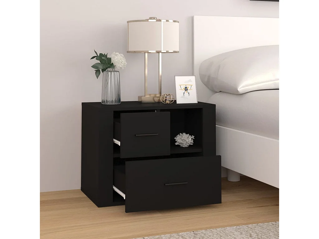 Nachtkastje Zwart 60x36x45 cm Bewerkt hout
