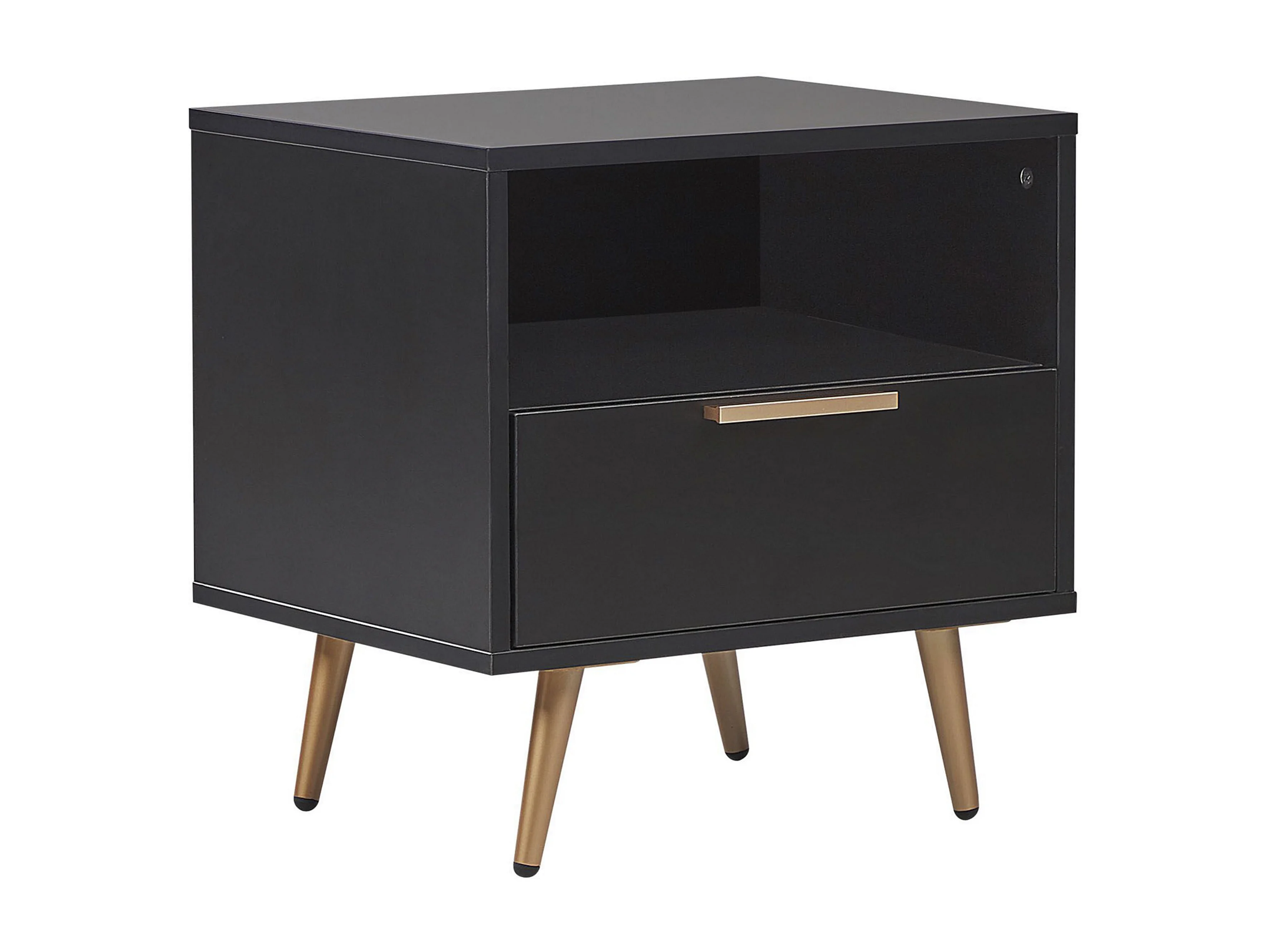 Nachtkastje - 54 cm - zwart met gouden poten - VELLORE