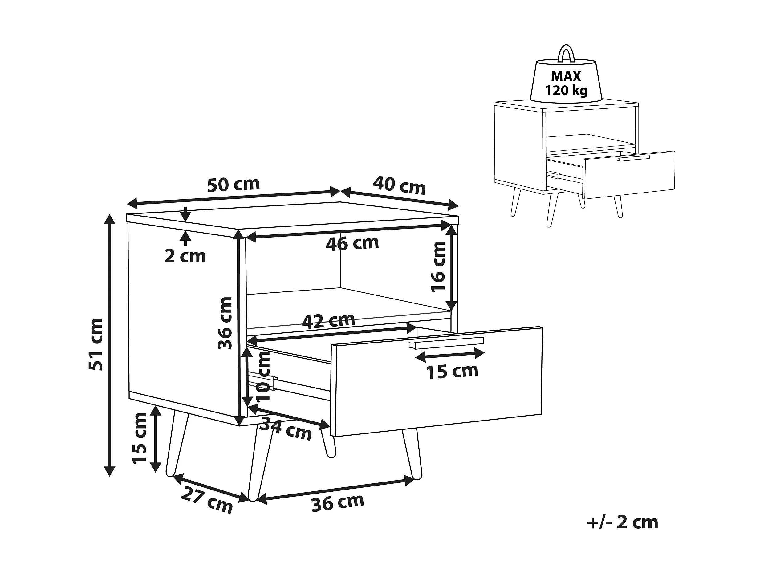 Nachtkastje - 54 cm - zwart met zwarte poten - VELLORE