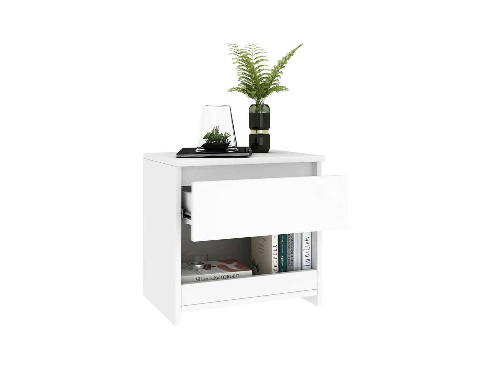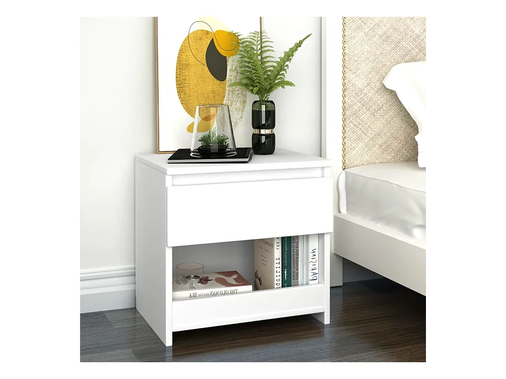 Nachtkastje 40x30x39 cm bewerkt hout hoogglans wit