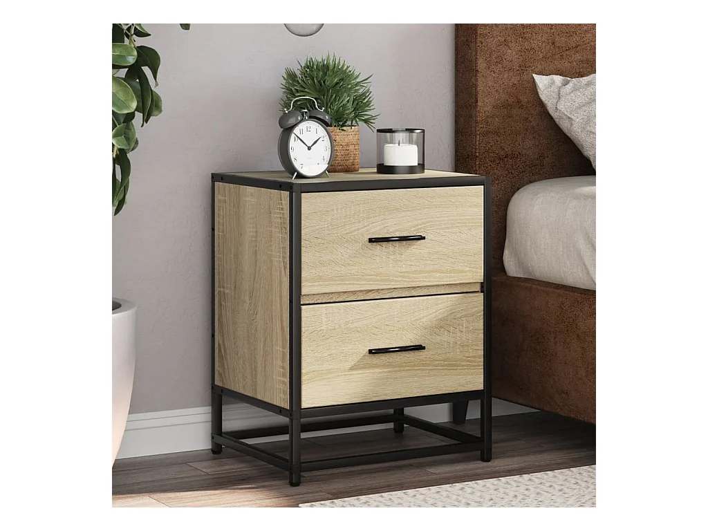 Nachtkastje 40x31x50 cm bewerkt hout en metaal sonoma eiken