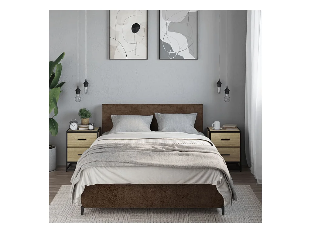 Nachtkastjes 2 st 40x31x50 cm bewerkt hout&metaal gerookt eiken
