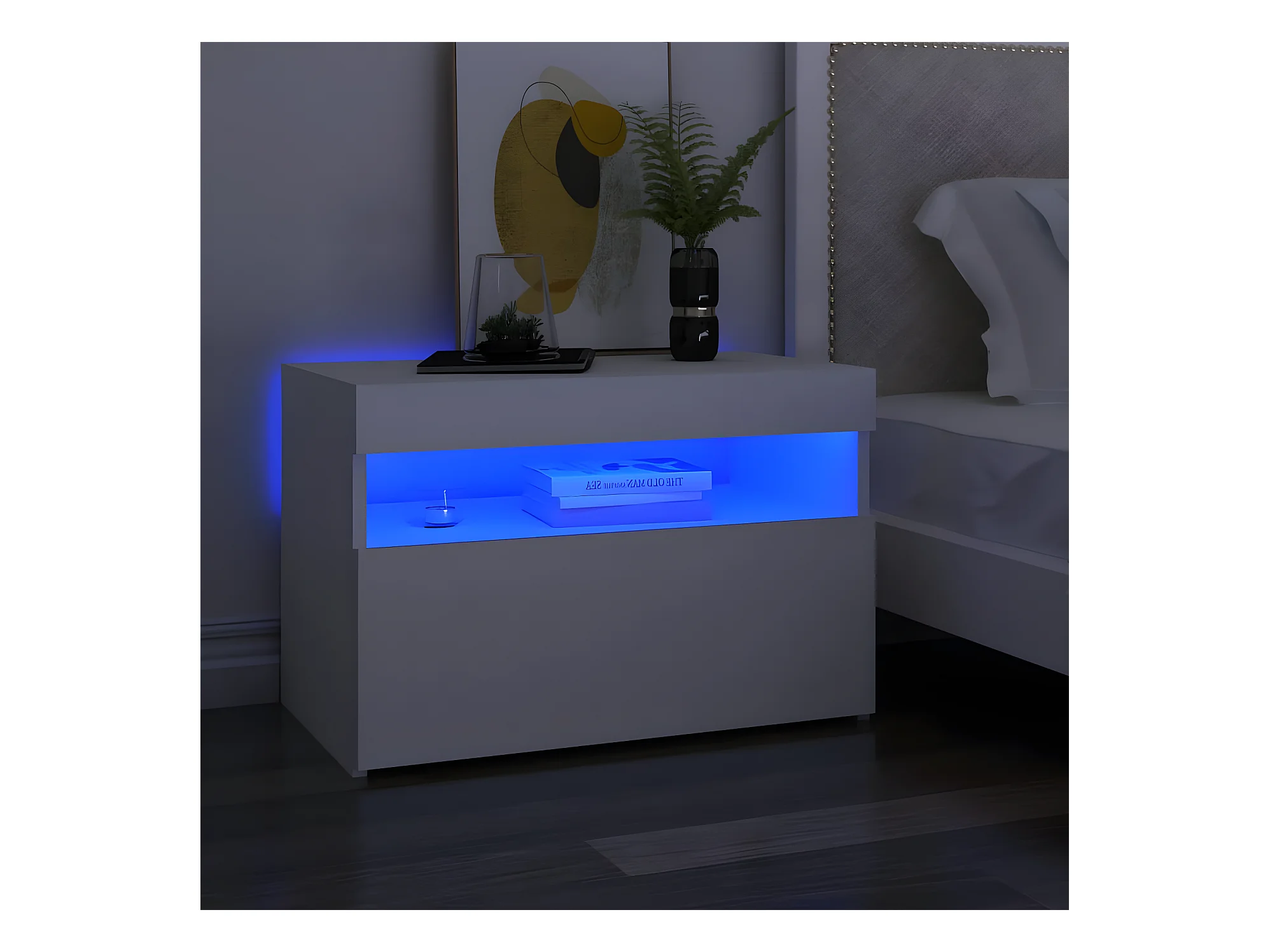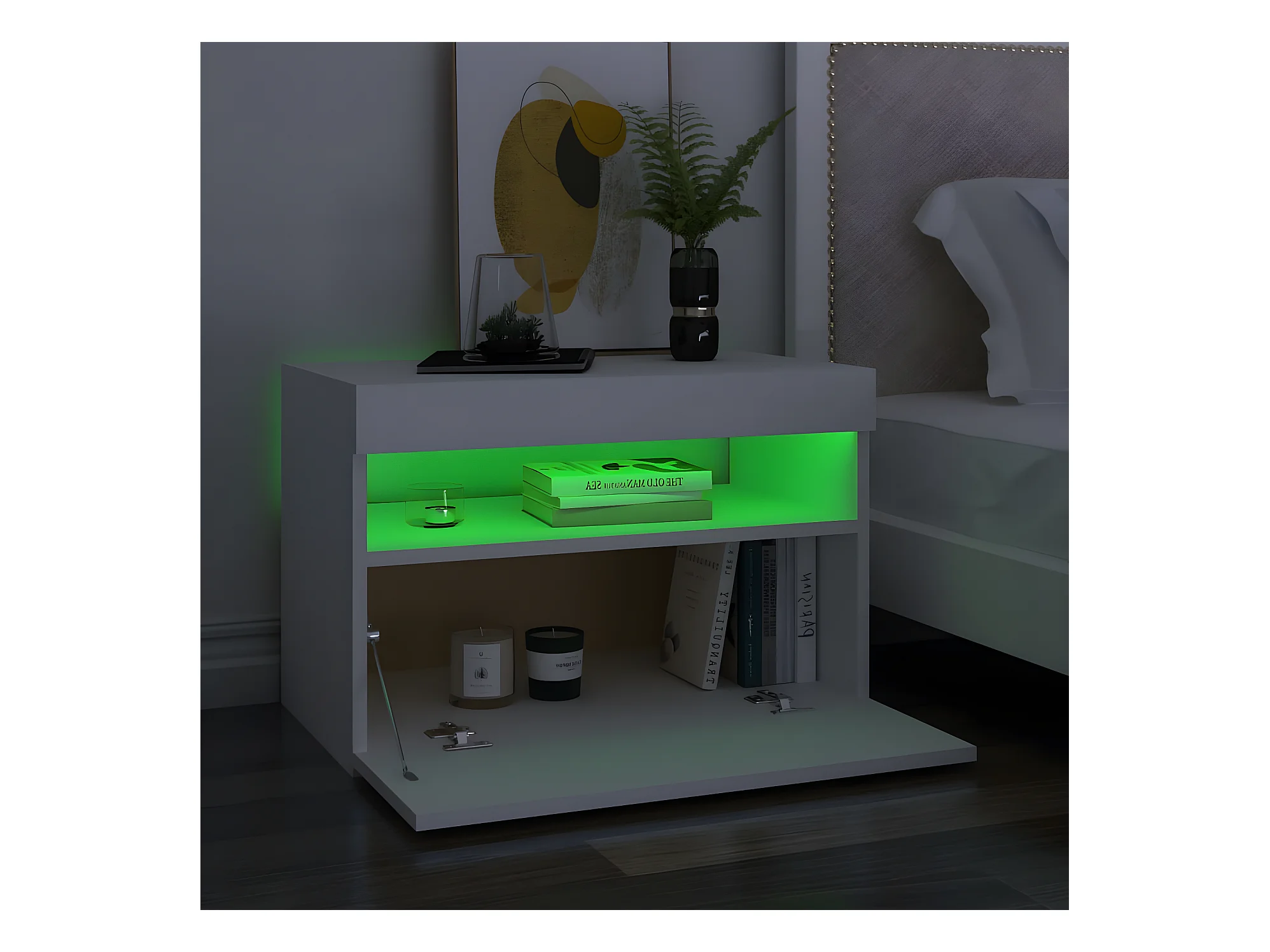Nachtkastje met LED-verlichting 60x35x40 cm bewerkt hout wit