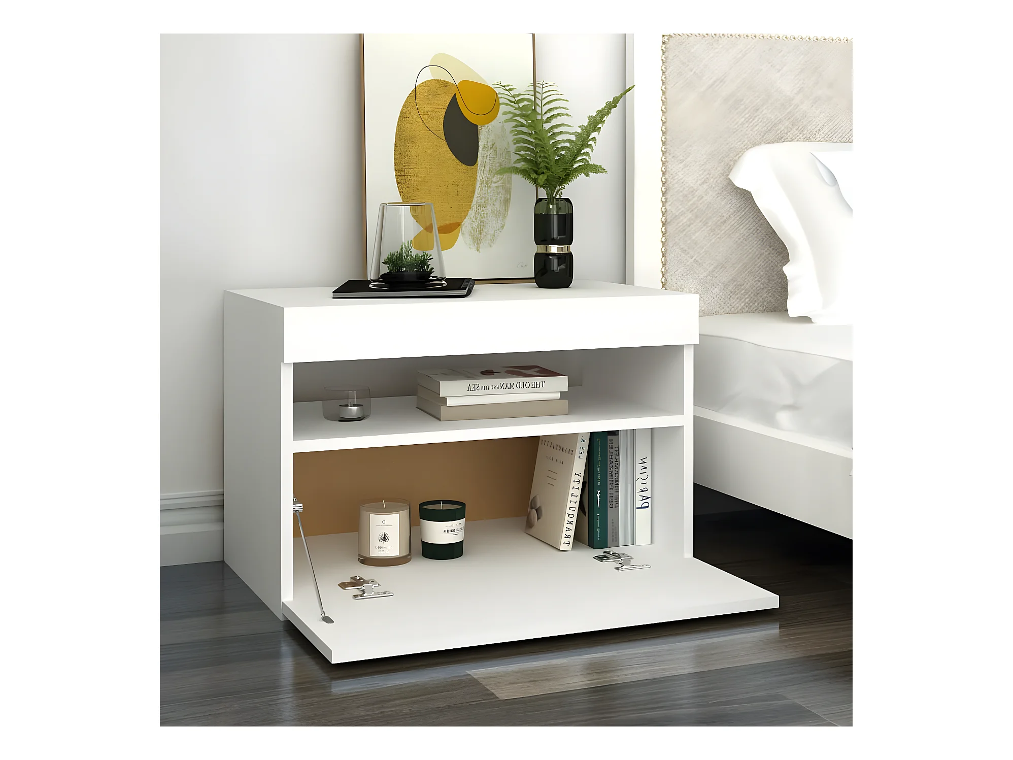 Nachtkastje met LED-verlichting wandgemonteerd wit