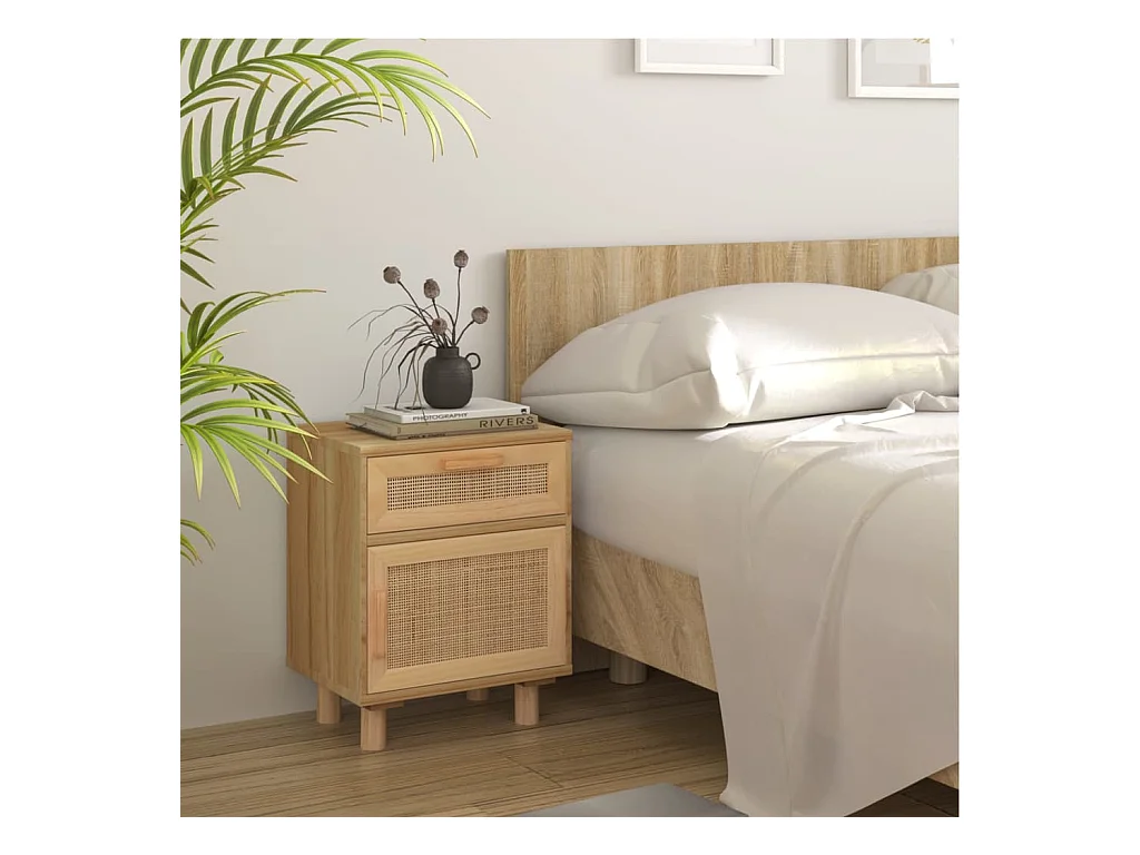 Nachtkastjes 2 st massief grenenhout en natuurlijk rattan bruin NL41184