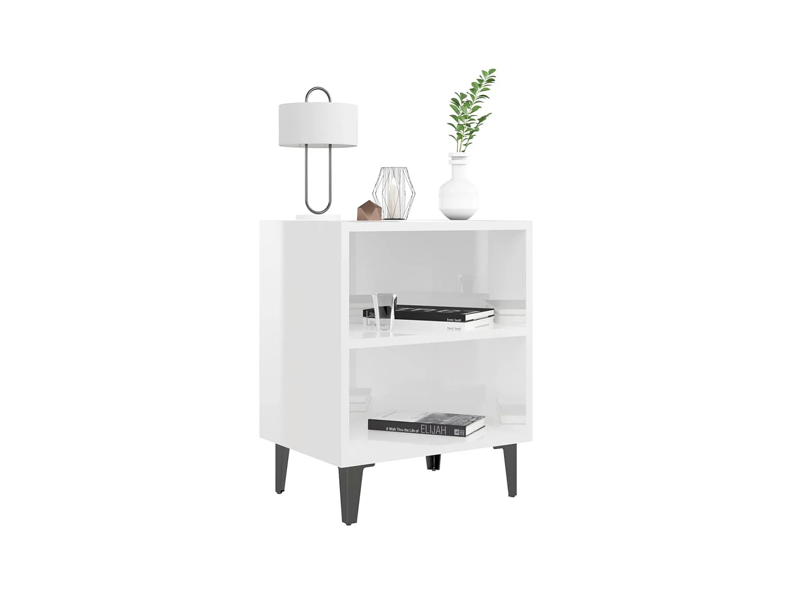 Nachtkastje met metalen poten 40x30x50 cm hoogglans wit