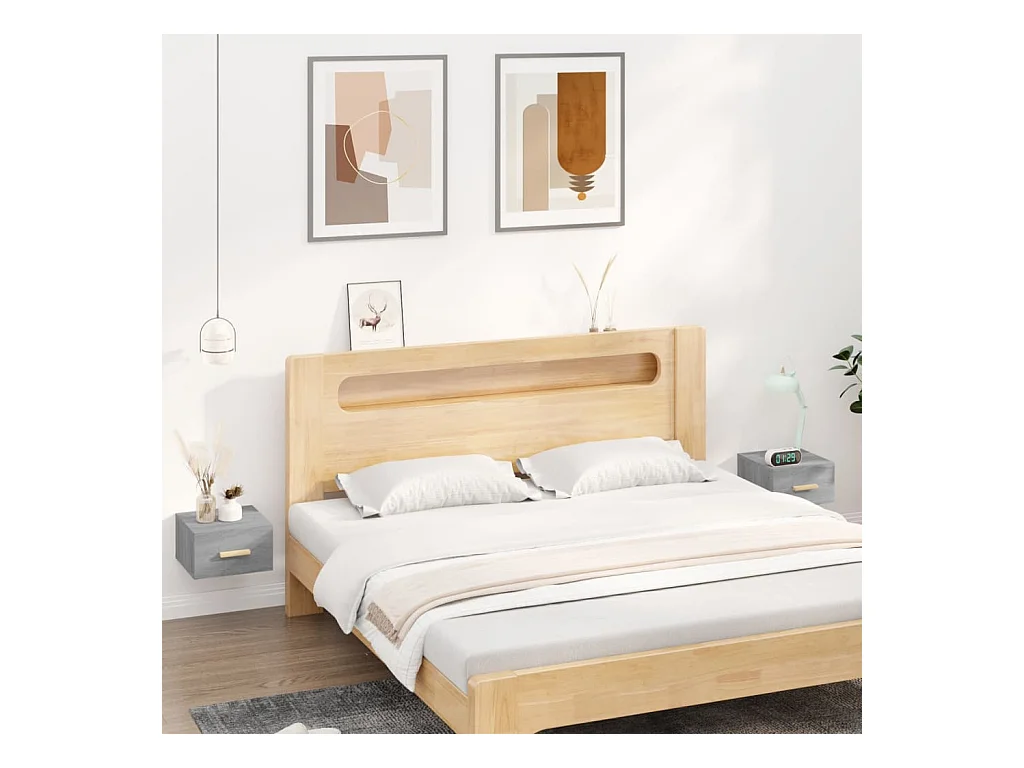 Nachtkastjes 2 st wandgemonteerd 35x35x20 cm grijs sonoma eiken