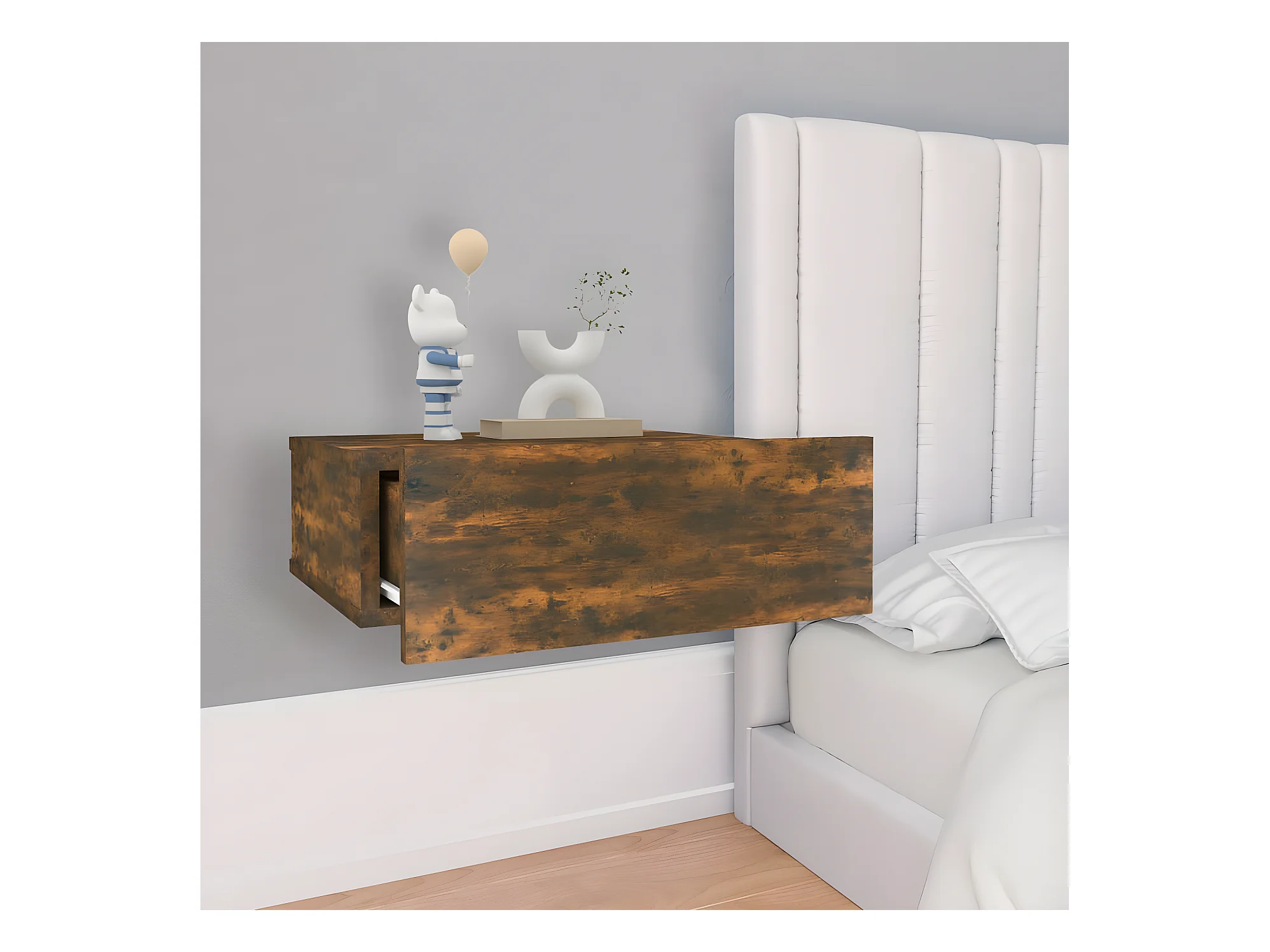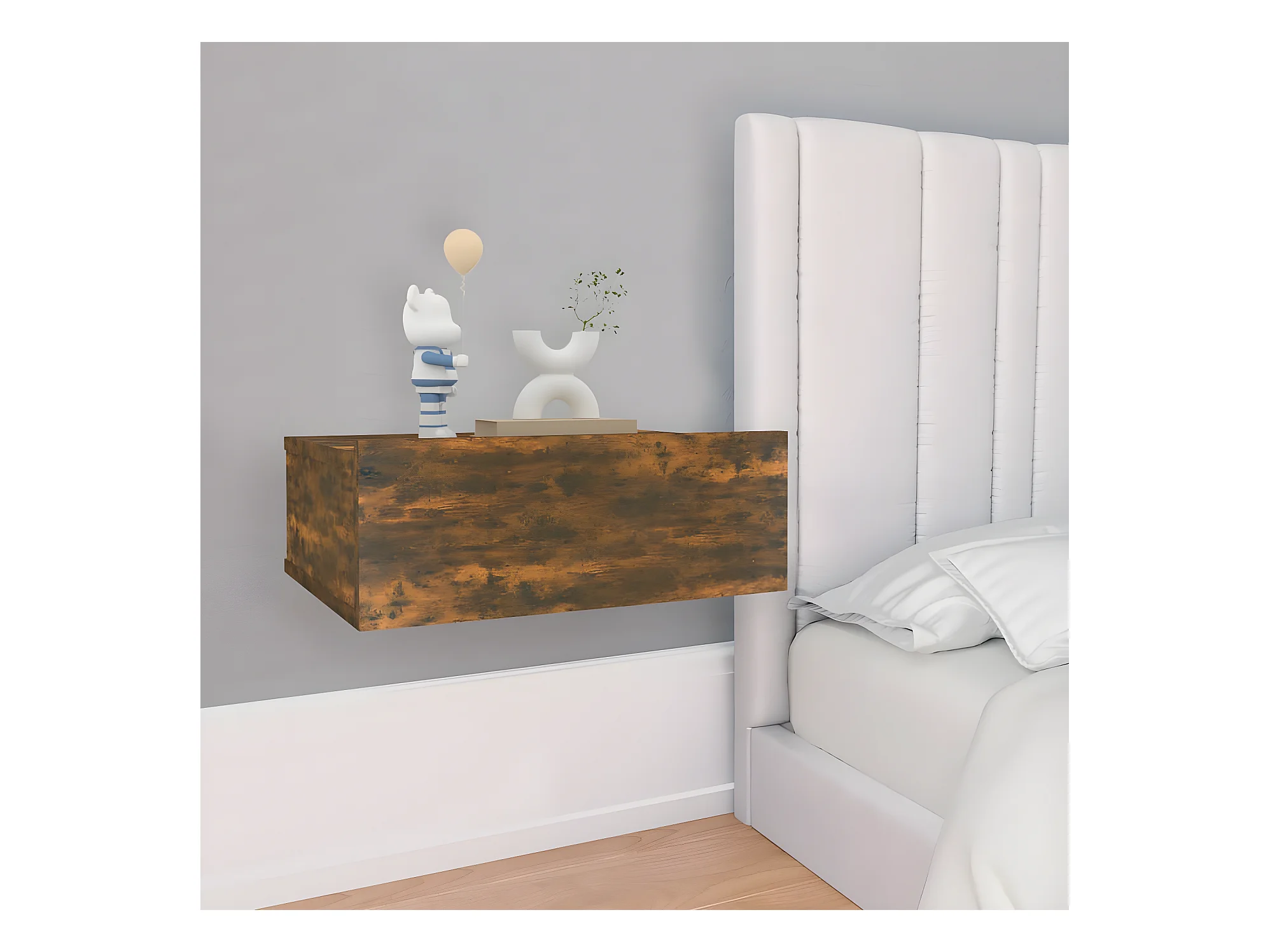 Nachtkastje zwevend 40x30x15 cm bewerkt hout gerookt eikenkleur