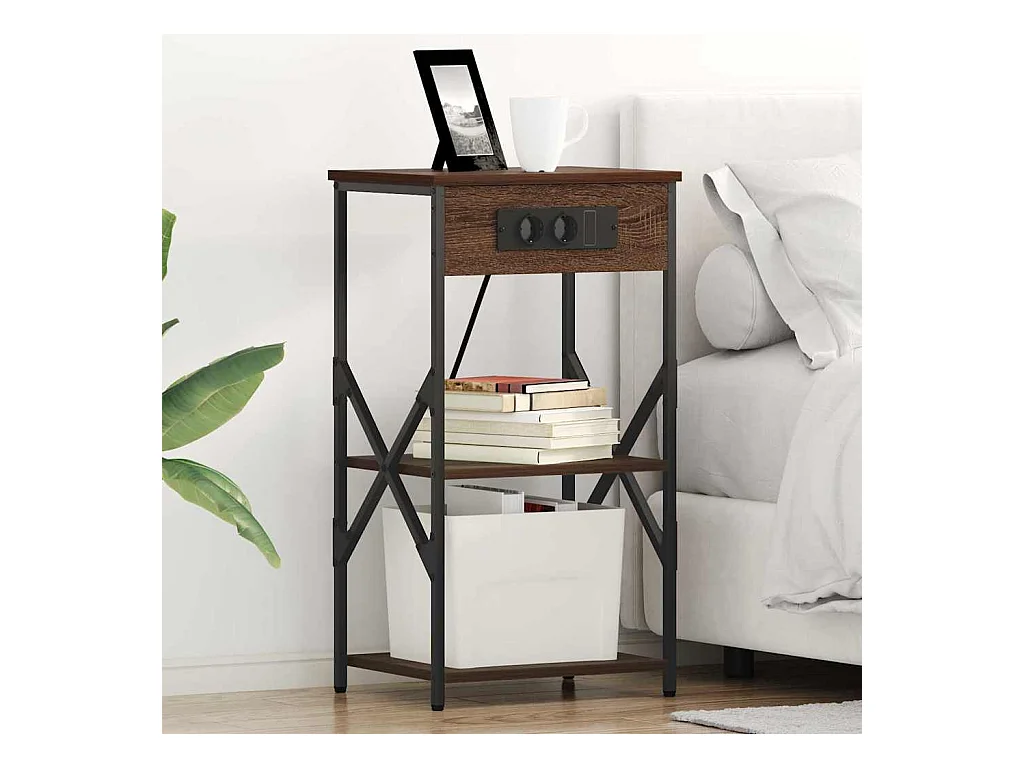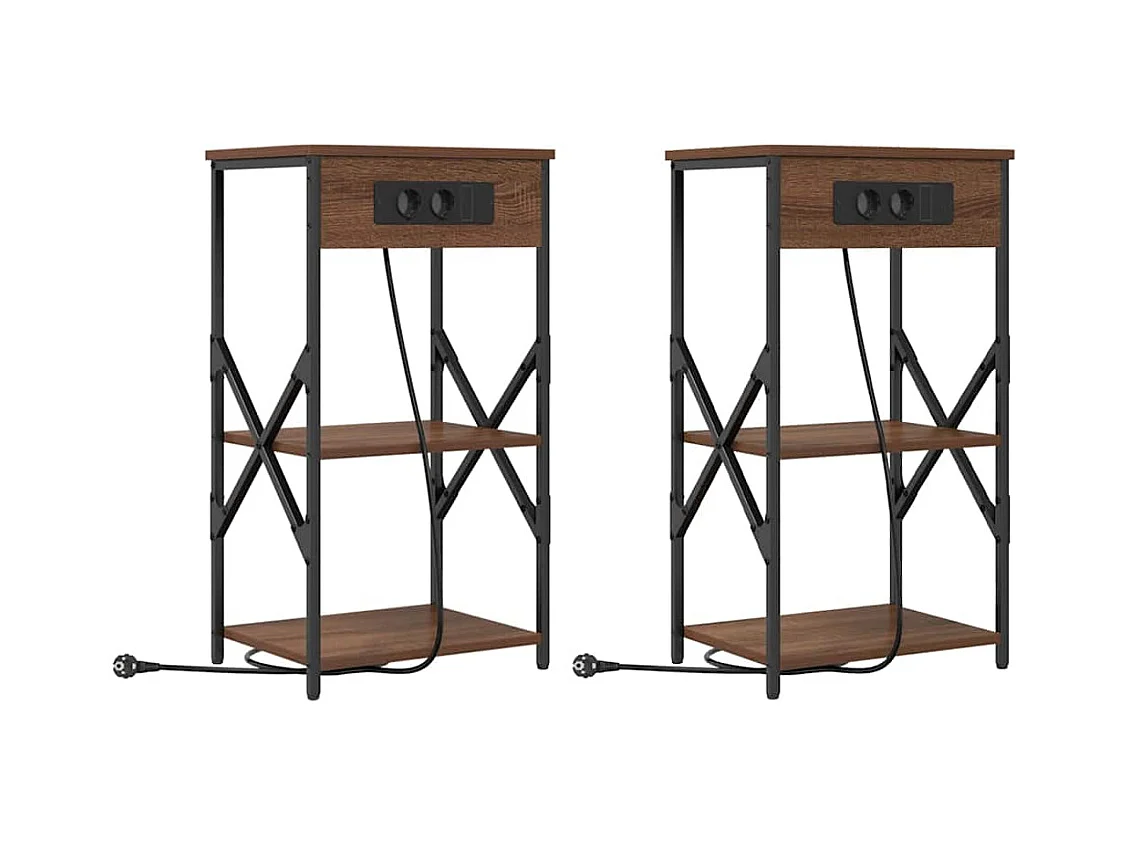 Nachtkastje met oplaadstation 2 stuks Bruin Eiken