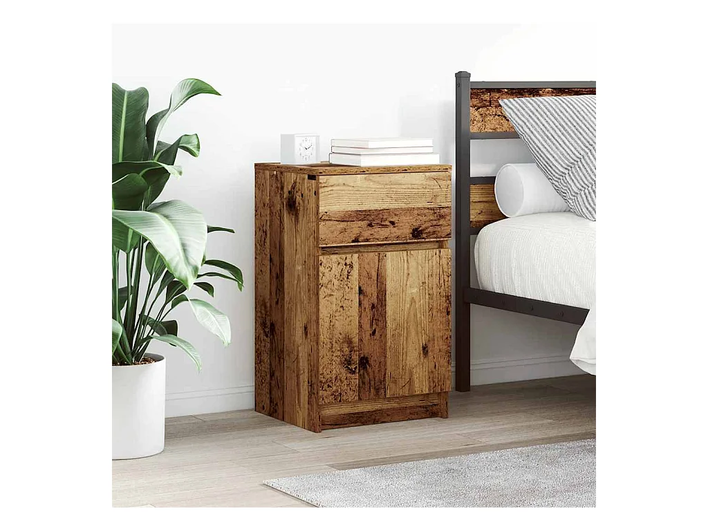 Nachtkastje met 3 lades, oud hout, 39x35x65 cm