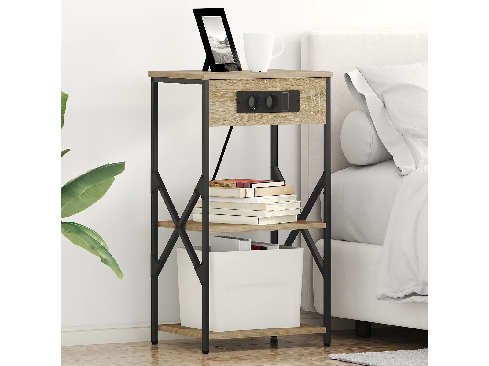 Bruine en zwarte nachtkastjes 40 x 33,5 x 46 cm