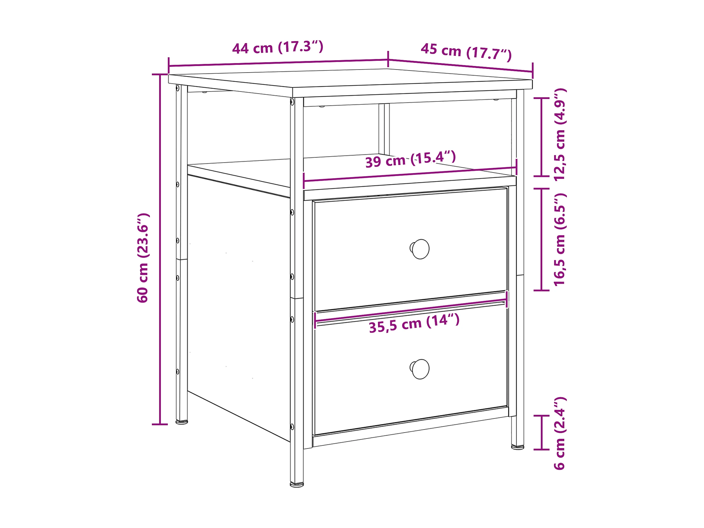 Nachtkastjes 2 stuks Zwarte eik 44x45x60 cm Bewerkt hout