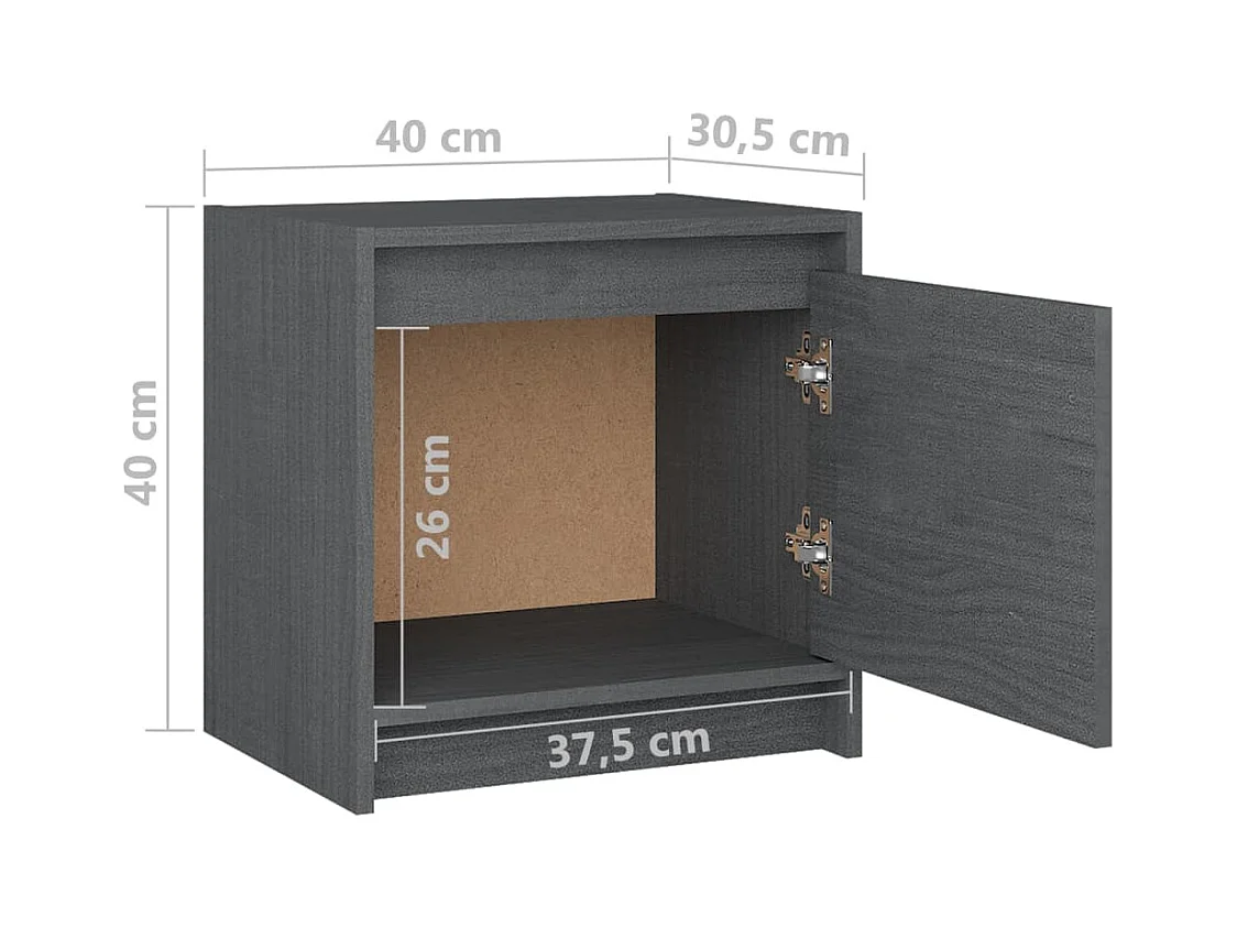 Nachtkastjes 2 stuks Grijs 40x30,5x40 cm Massief grenenhout