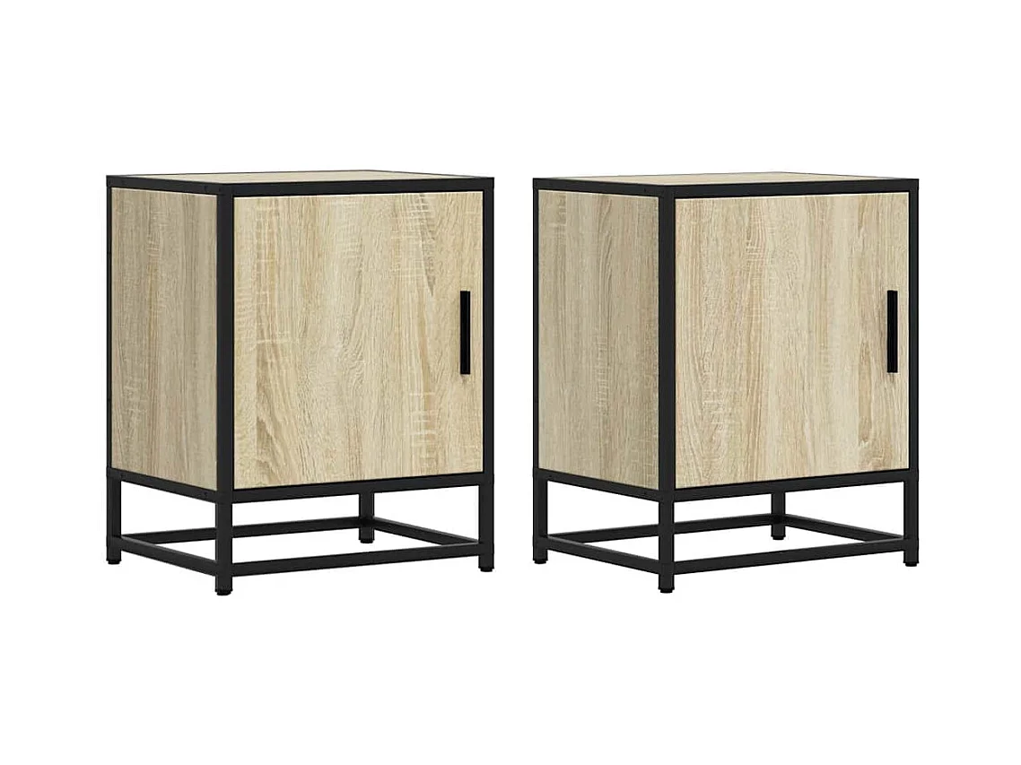 Nachtkastjes 2st 40x31x50cm bewerkt hout en metaal sonoma eiken