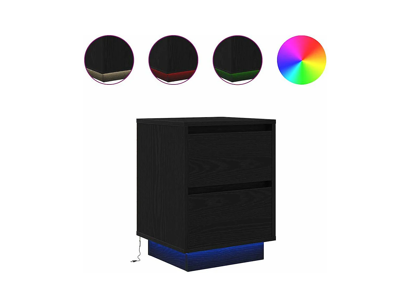 Nachtkastje met ledverlichting Zwarte eik Technisch hout