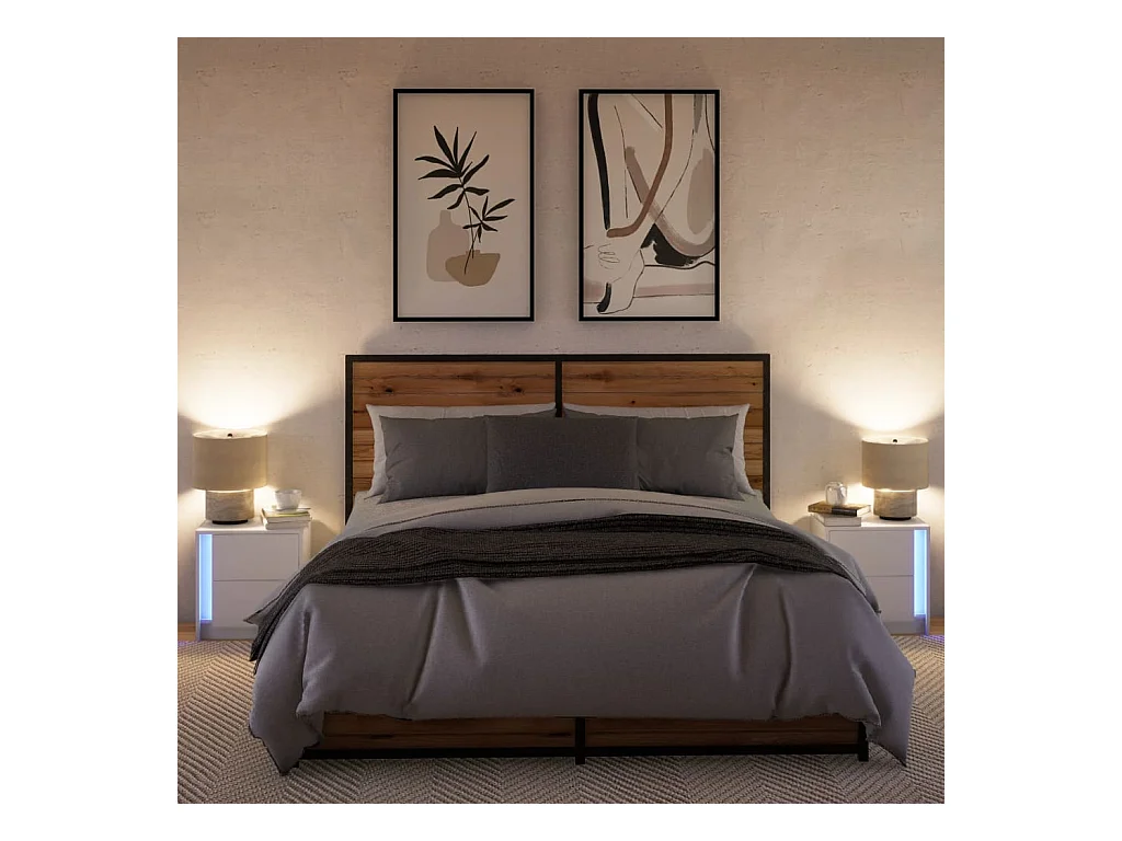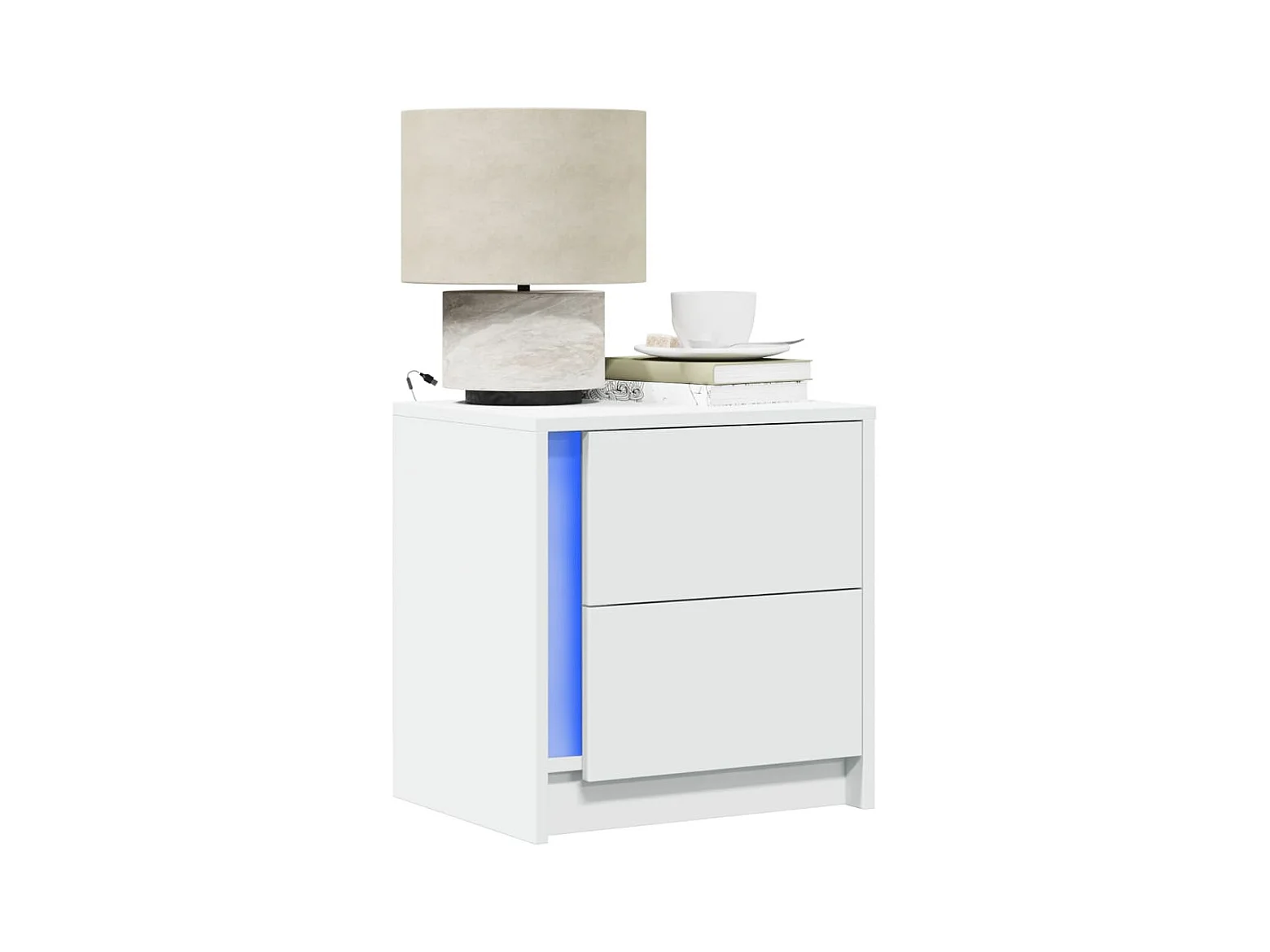 Nachtkastje met LED-verlichting bewerkt hout wit