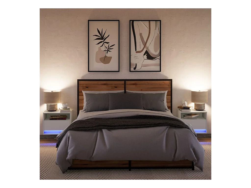 Nachtkastjes met LED's 2 st wandgemonteerd wit