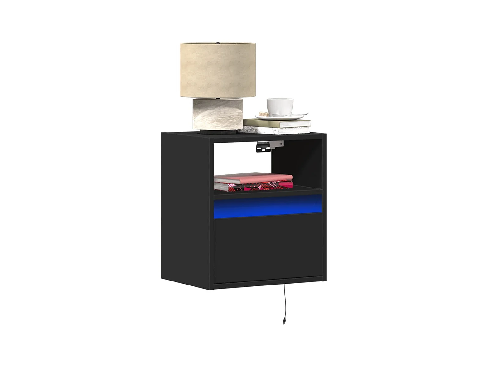 Nachtkastjes met LED's 2 st wandgemonteerd zwart