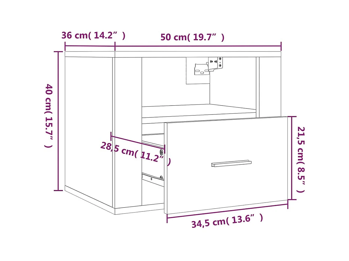 Nachtkastjes voor wandmontage 2 stuks Sonoma eiken 50x36x40 cm