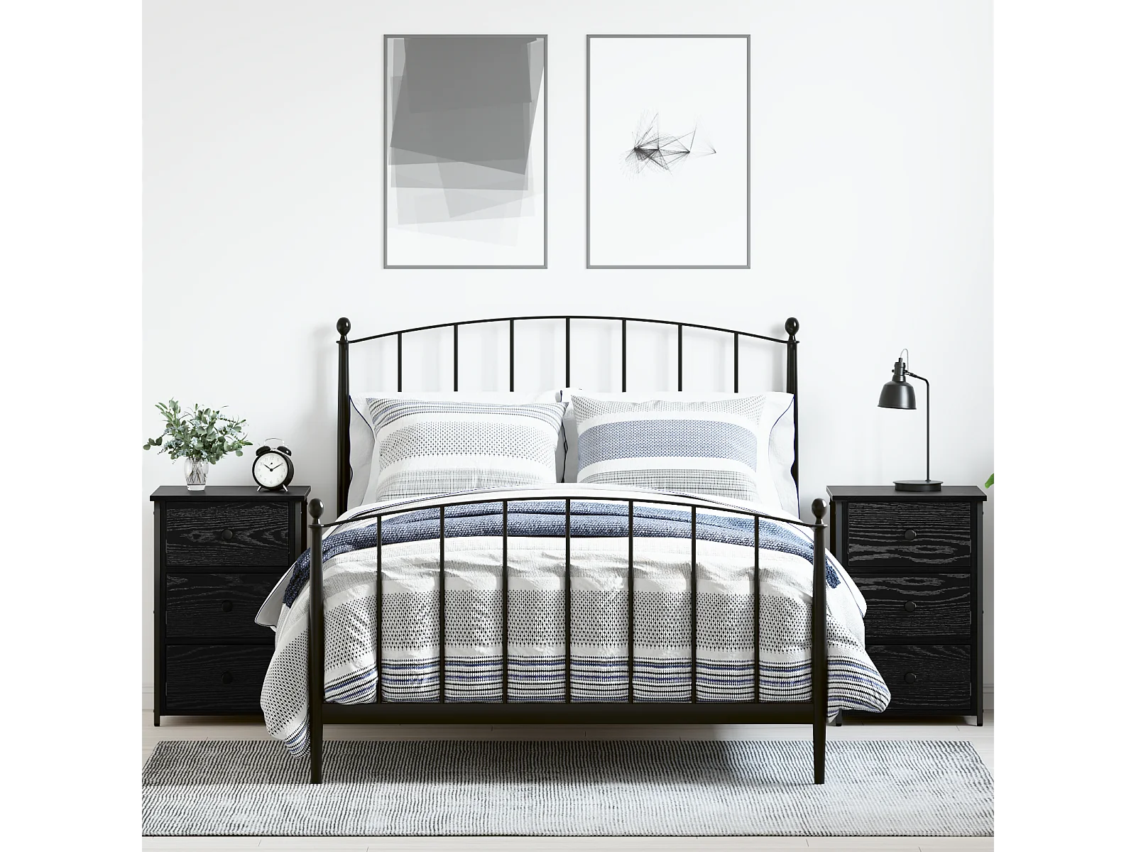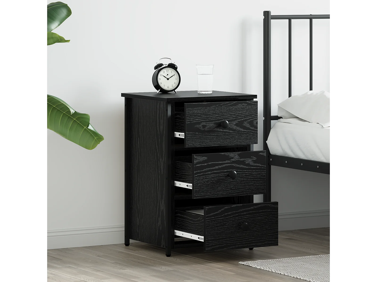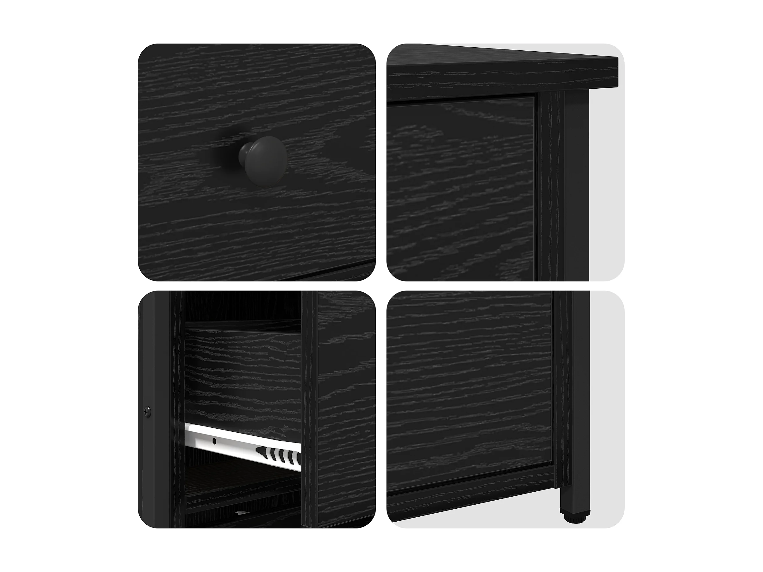 Nachtkastjeset van zwart eikenhout, zwart eikenhout