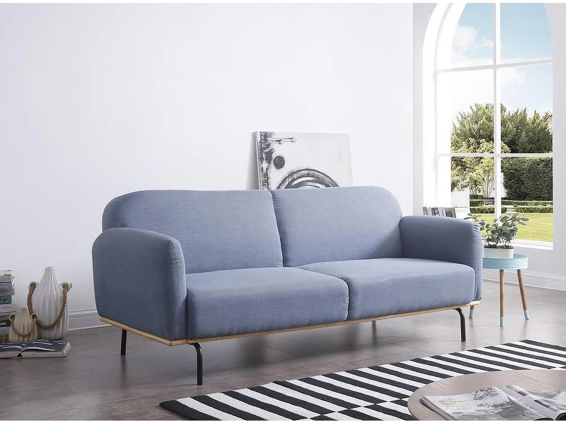 Namille 3-zits blauwfluwelen slaapbank en zwart metalen poten