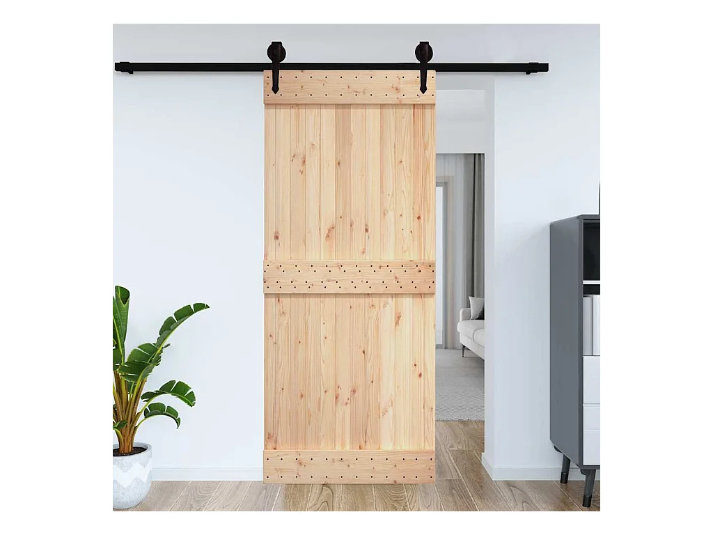 Schuifdeur en beslagset 70x210 cm massief grenen