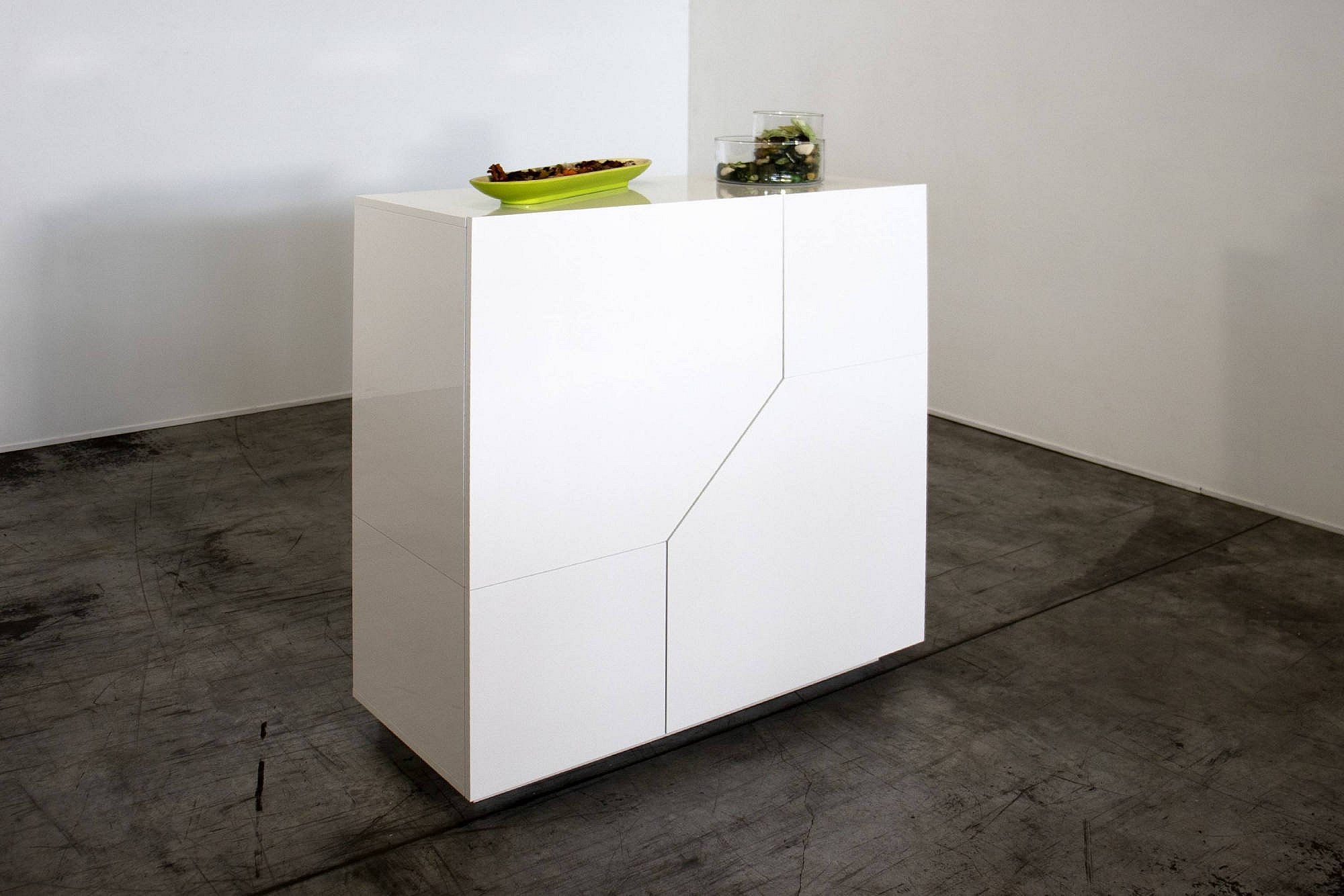 Nathan dressoir, 2-deurs keukendressoir, Woonkamerbuffet, 100% Made in Italy, 100x43h106 cm, Glanzend wit