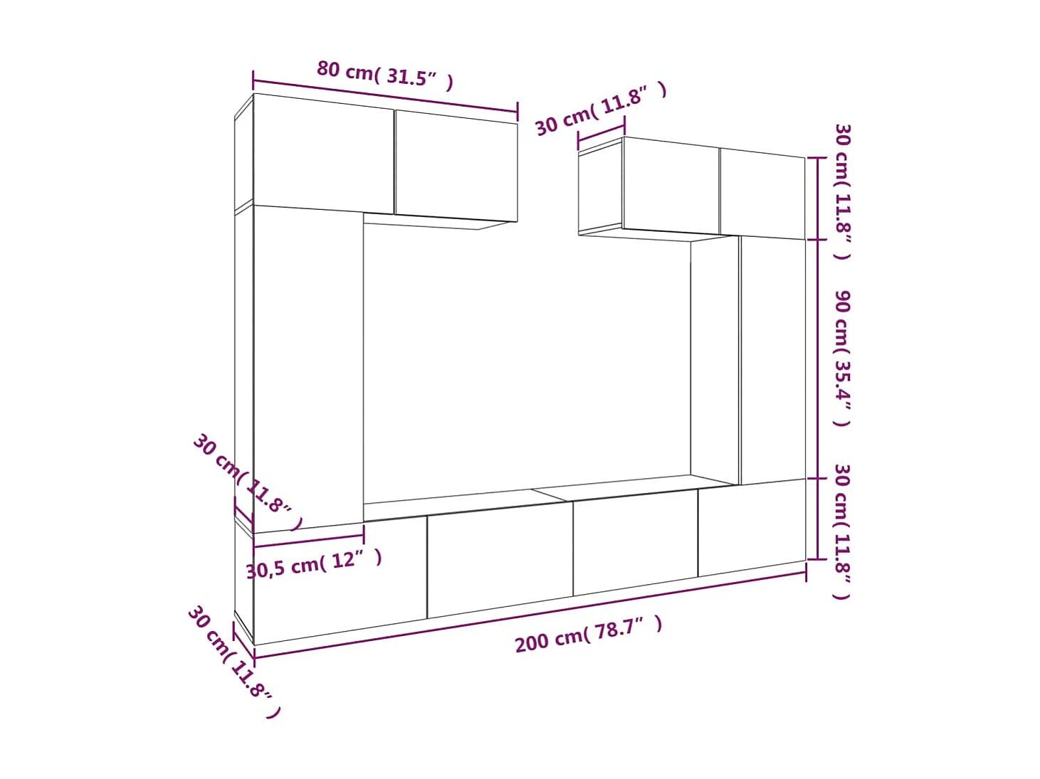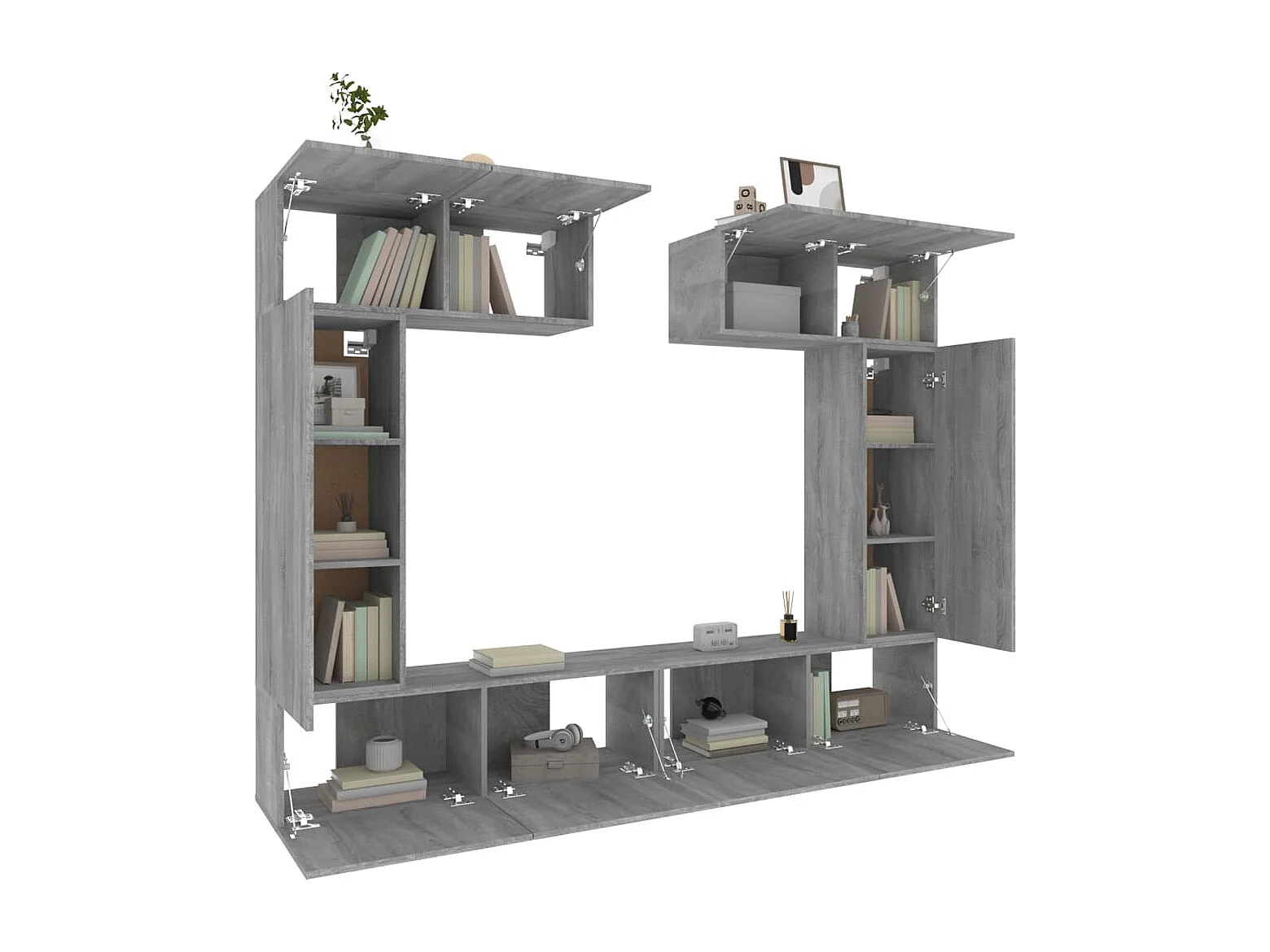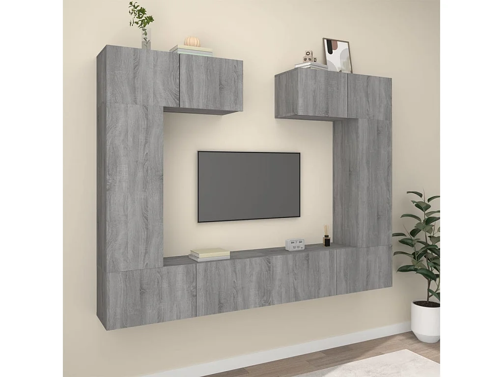 Nawal 6-delige Tv-meubelset bewerkt hout grijs sonoma eikenkleurig