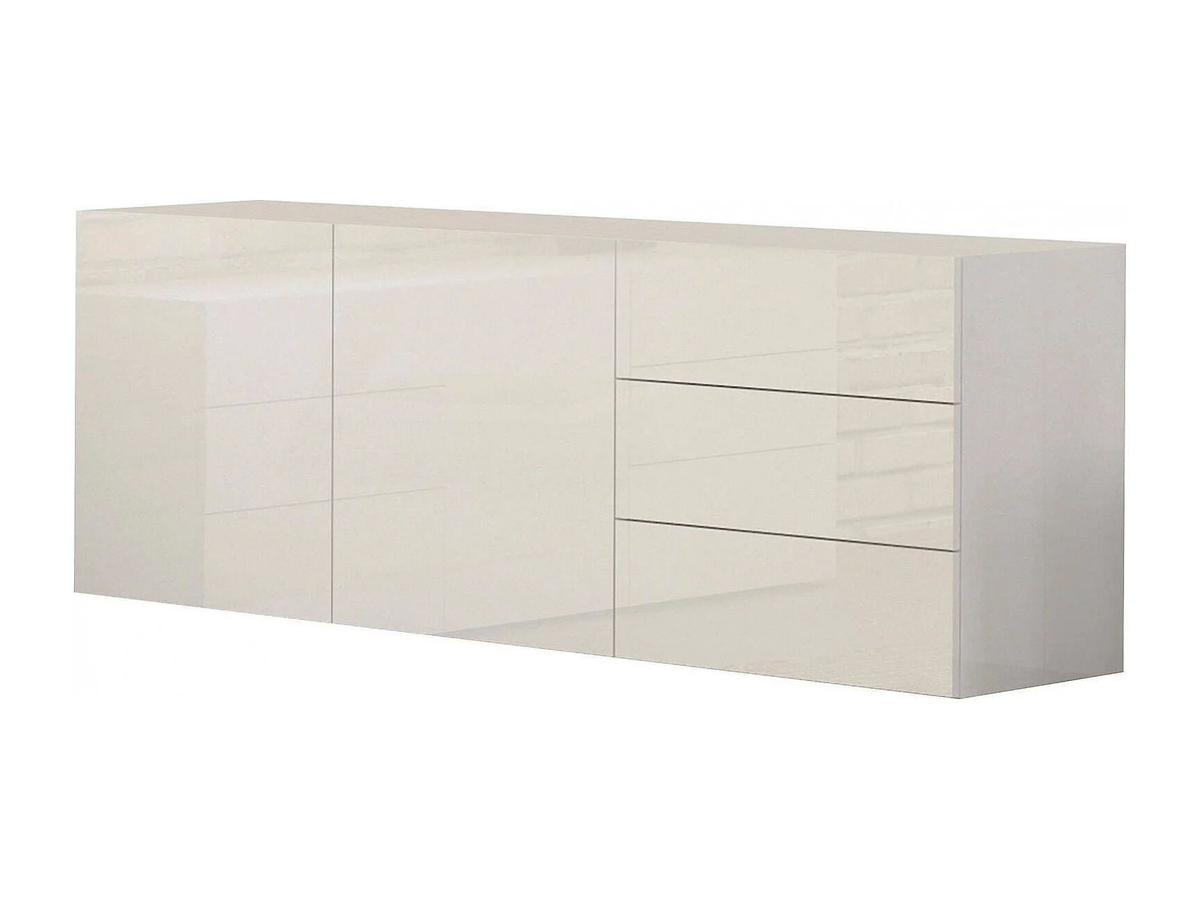 Nereo dressoir, Keukendressoir met 2 deuren en 3 laden, Woonkamerbuffet, 100% Made in Italy, 170x40h35 cm, Glanzend wit
