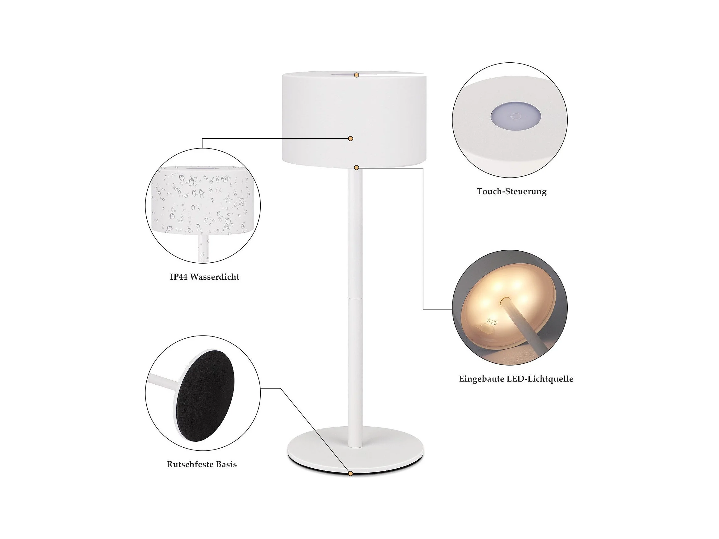 NETTLIFE Draadloze LED-tafellamp, traploos dimbaar bedlampje met accu