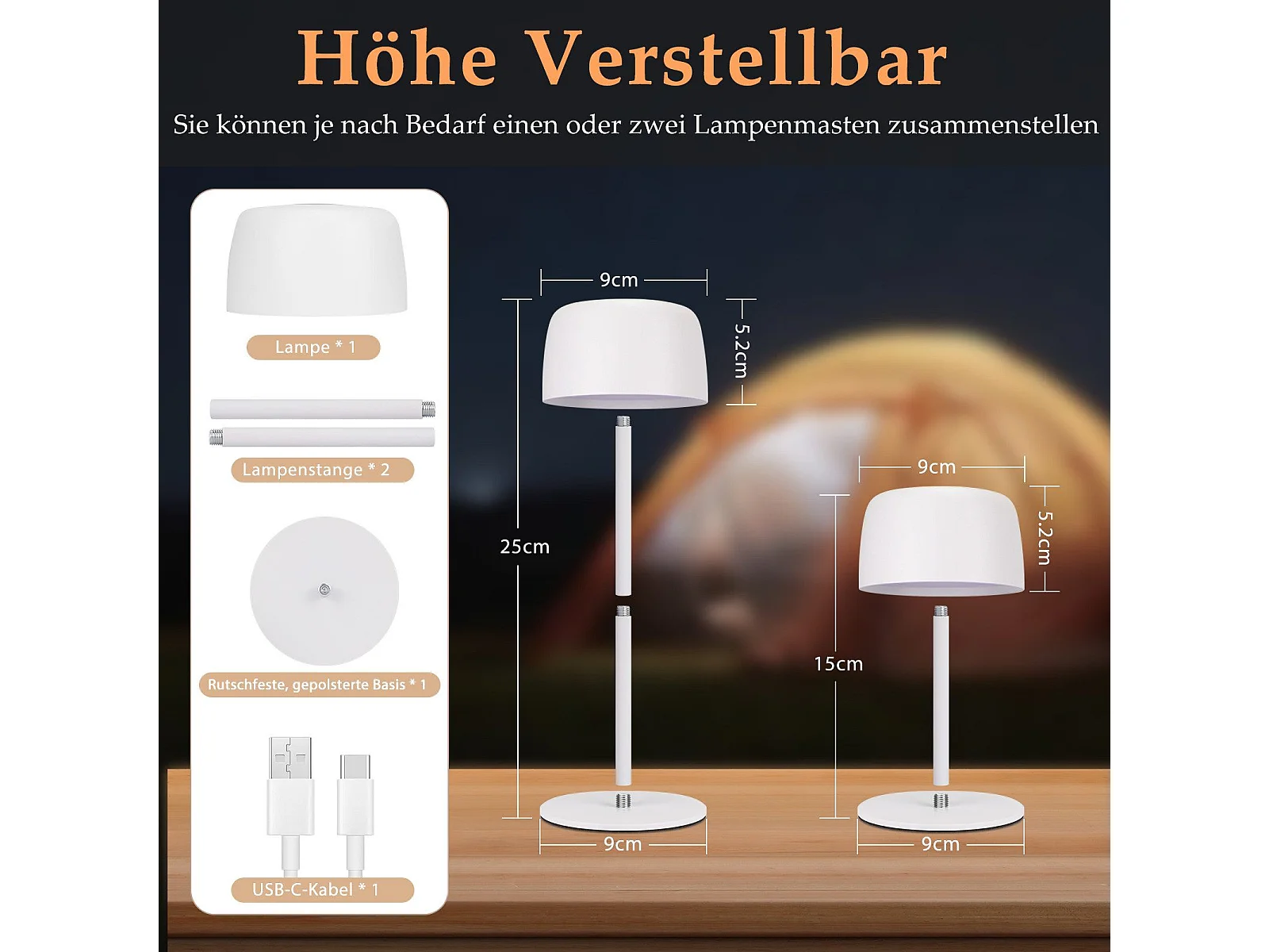 NETTLIFE Draadloze LED-tafellamp: dimbare touch-tafellamp met 3 kleurtemperaturen, in hoogte verstelbaar, USB