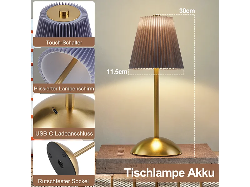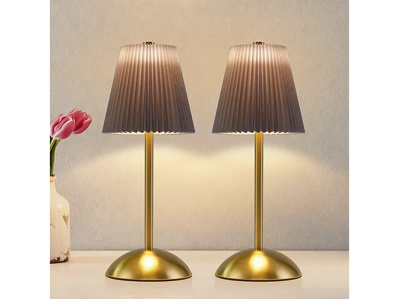 Nettlife Draadloze Tafellampenset van 2 - Dimbaar LED-nachtlampje met aanraakbediening, USB-oplaadbaar, stoffen kap, modern design voor de slaapkamer