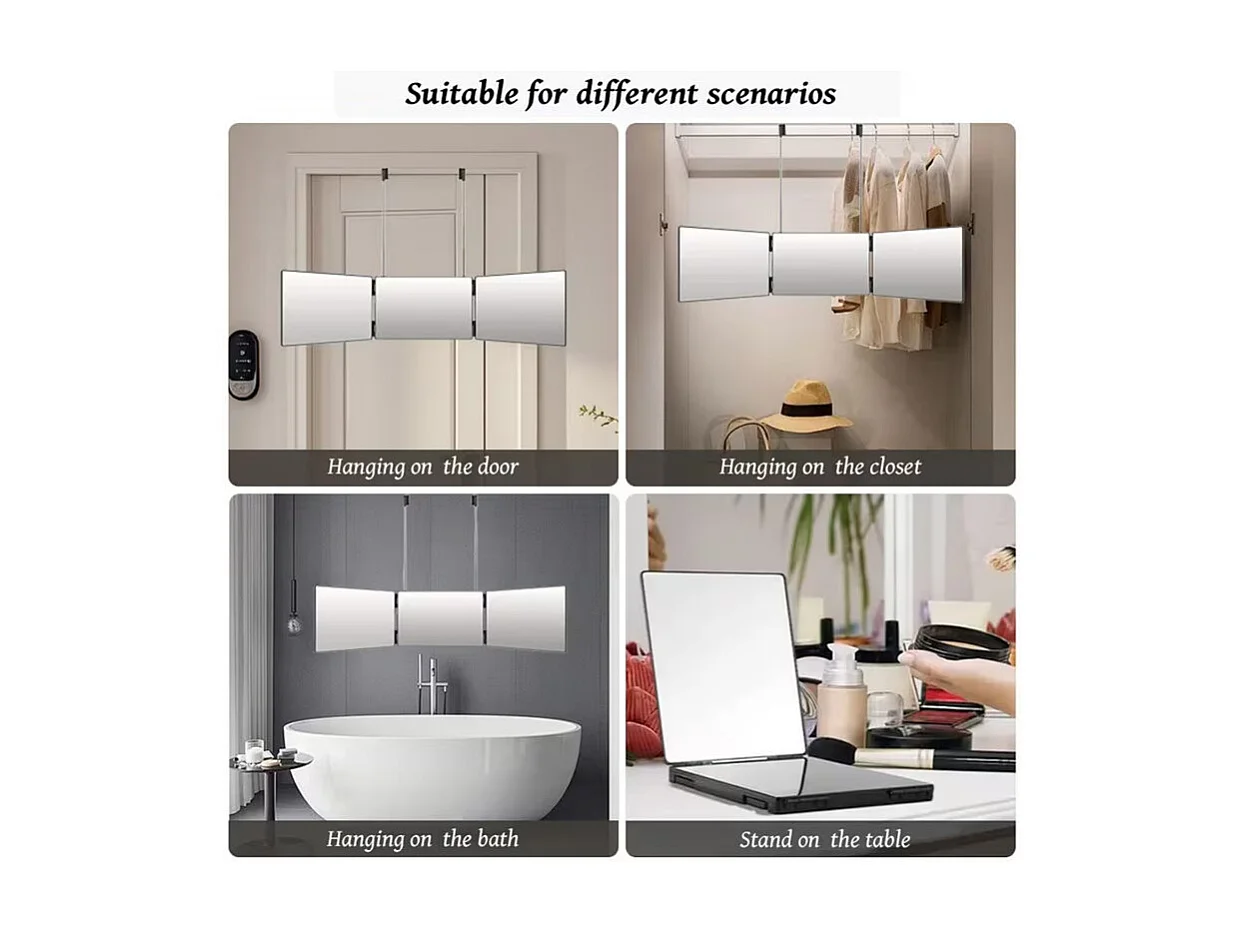 Nettlife in hoogte verstelbare make-upspiegel met driedelig ontwerp | Platte en vormvaste spiegel, ideaal voor de badkamer