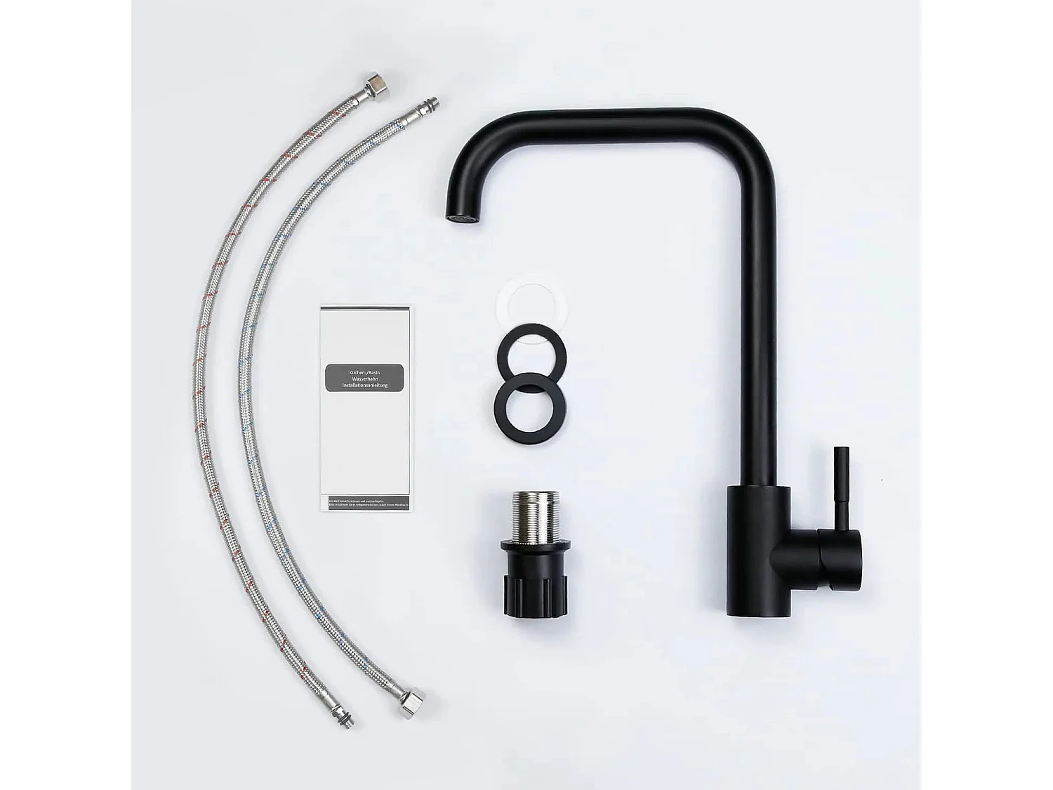 NETTLIFE Keukenkraan, 360° zwenkbare keukenkraan, enkellaags mengkraan met unieke handgreep, hoog druk, zwarte kleur, roestvrijstalen