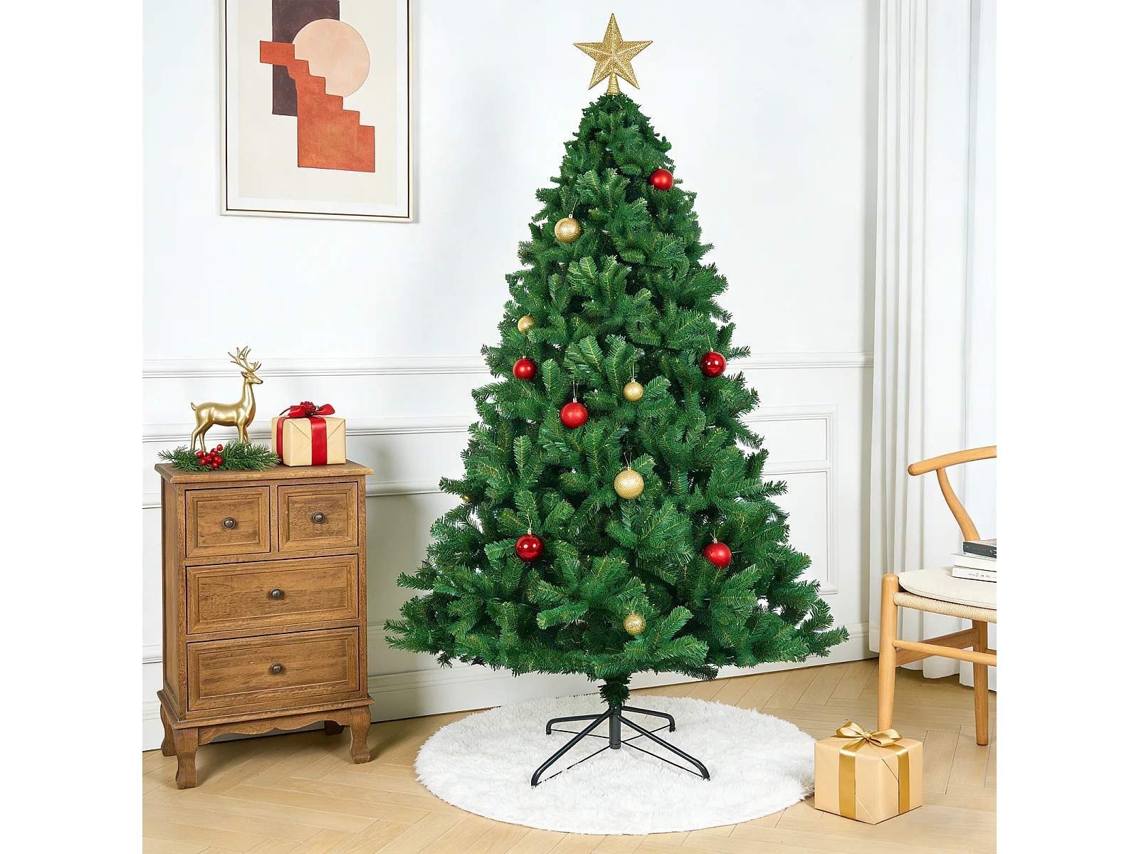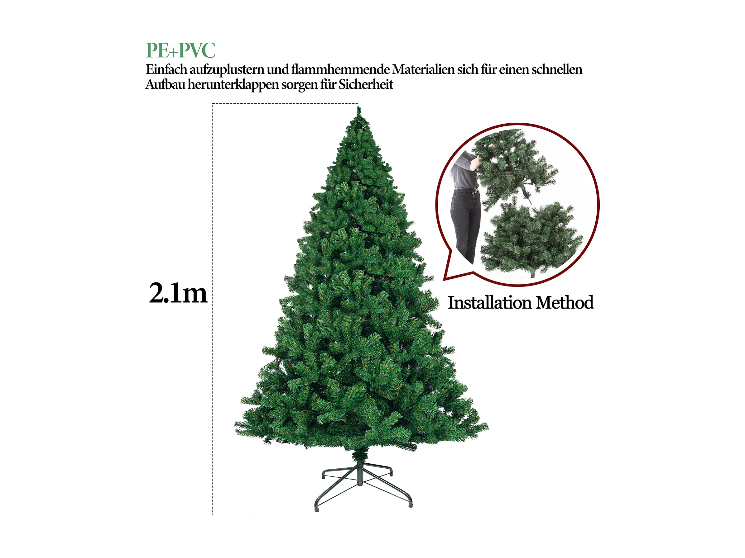 Nettlife Kunstkerstboom 210 cm, ultrarealistisch PVC, snelle en eenvoudige montage, groene kerstboom met stabiele metalen standaard.