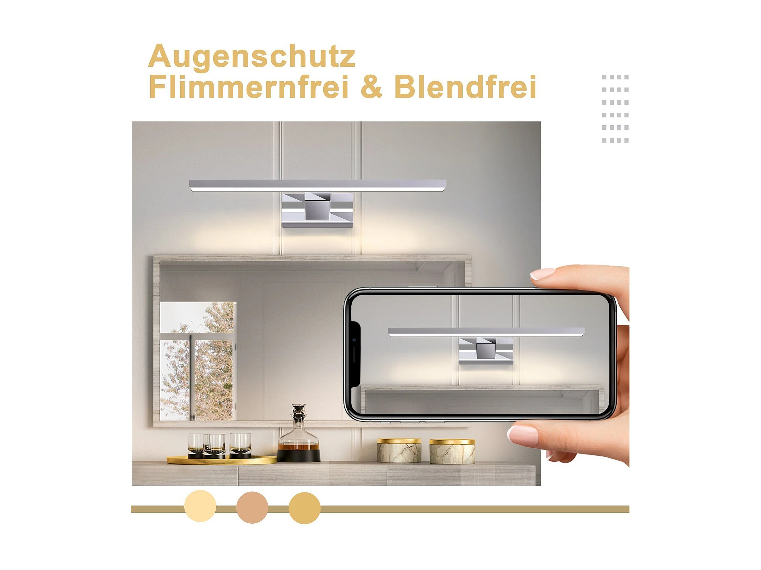 NETTLIFE Spiegellamp badkamer - 40CM - chroom - IP44 - modern - 8W - neutraal wit 4000K - wandlamp - LED Spiegelverlichting - voor kelder | keuken | badkamermeubel