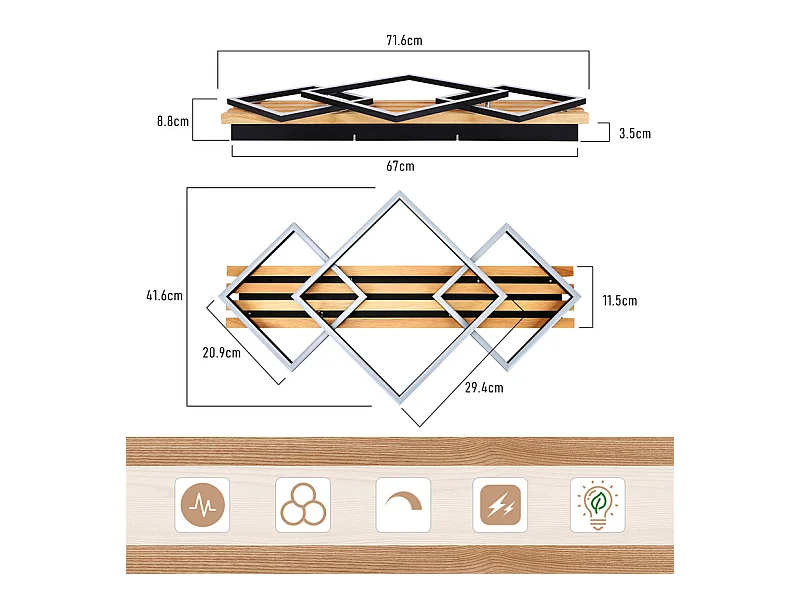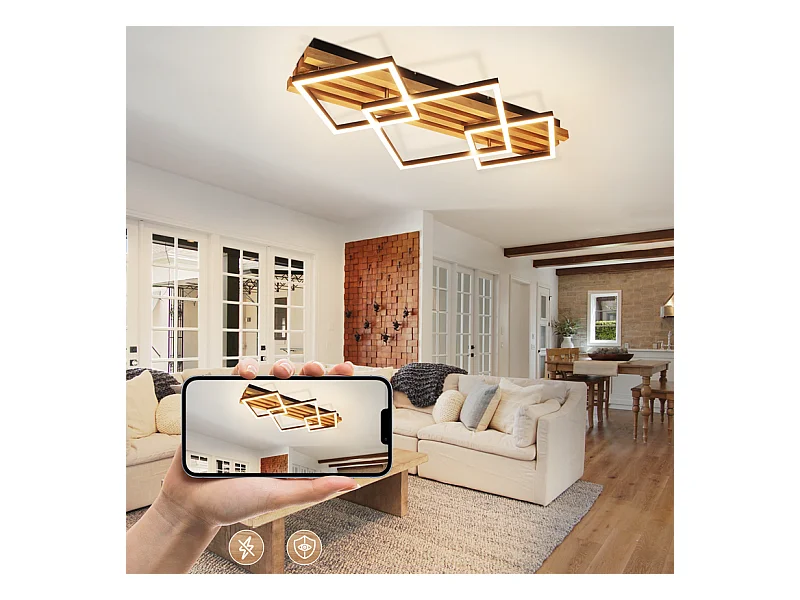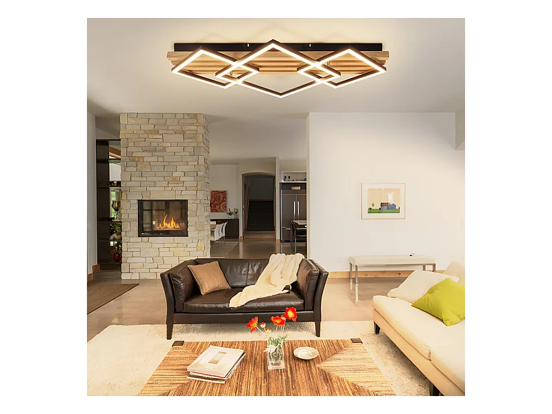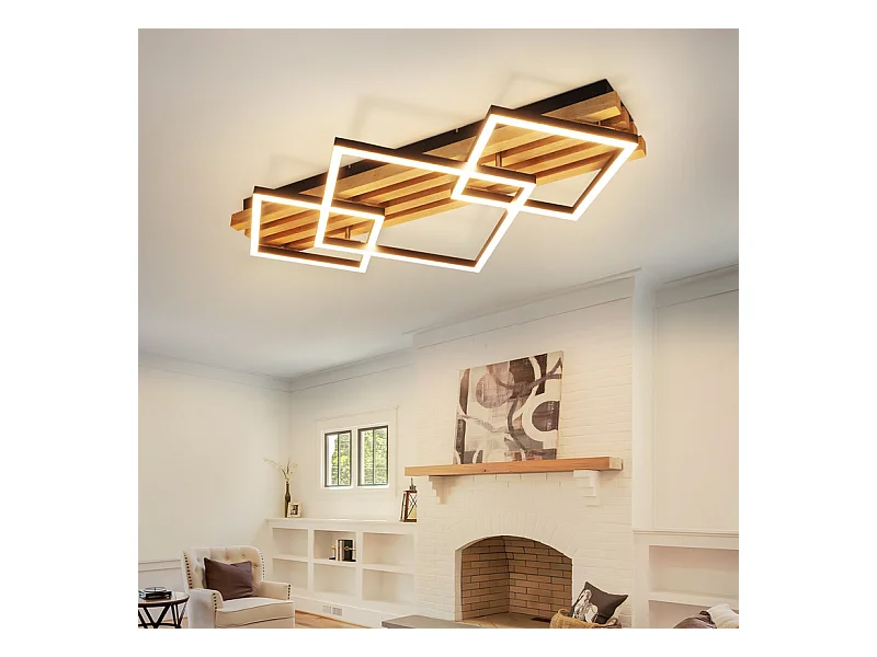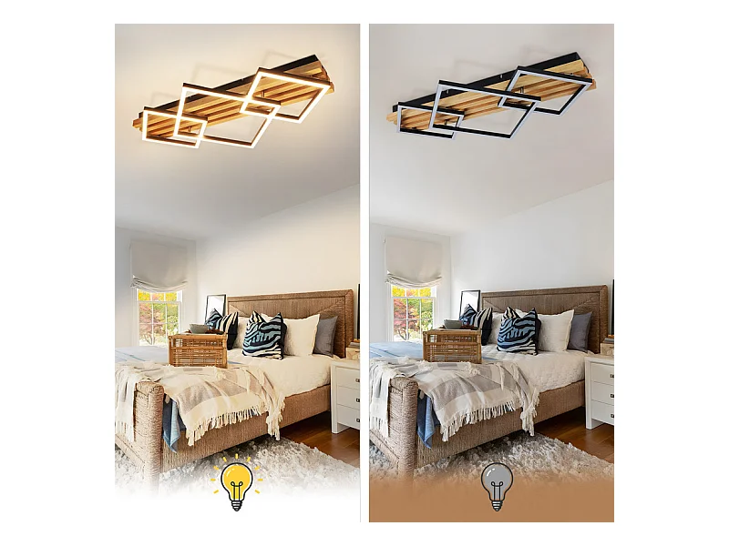 NETTLIFE LED houten plafondlamp: 70 cm, dimbaar, modern, 46 W, zwart vierkant. Geschikt voor woonkamer, slaapkamer, keuken, hal en kantoor.