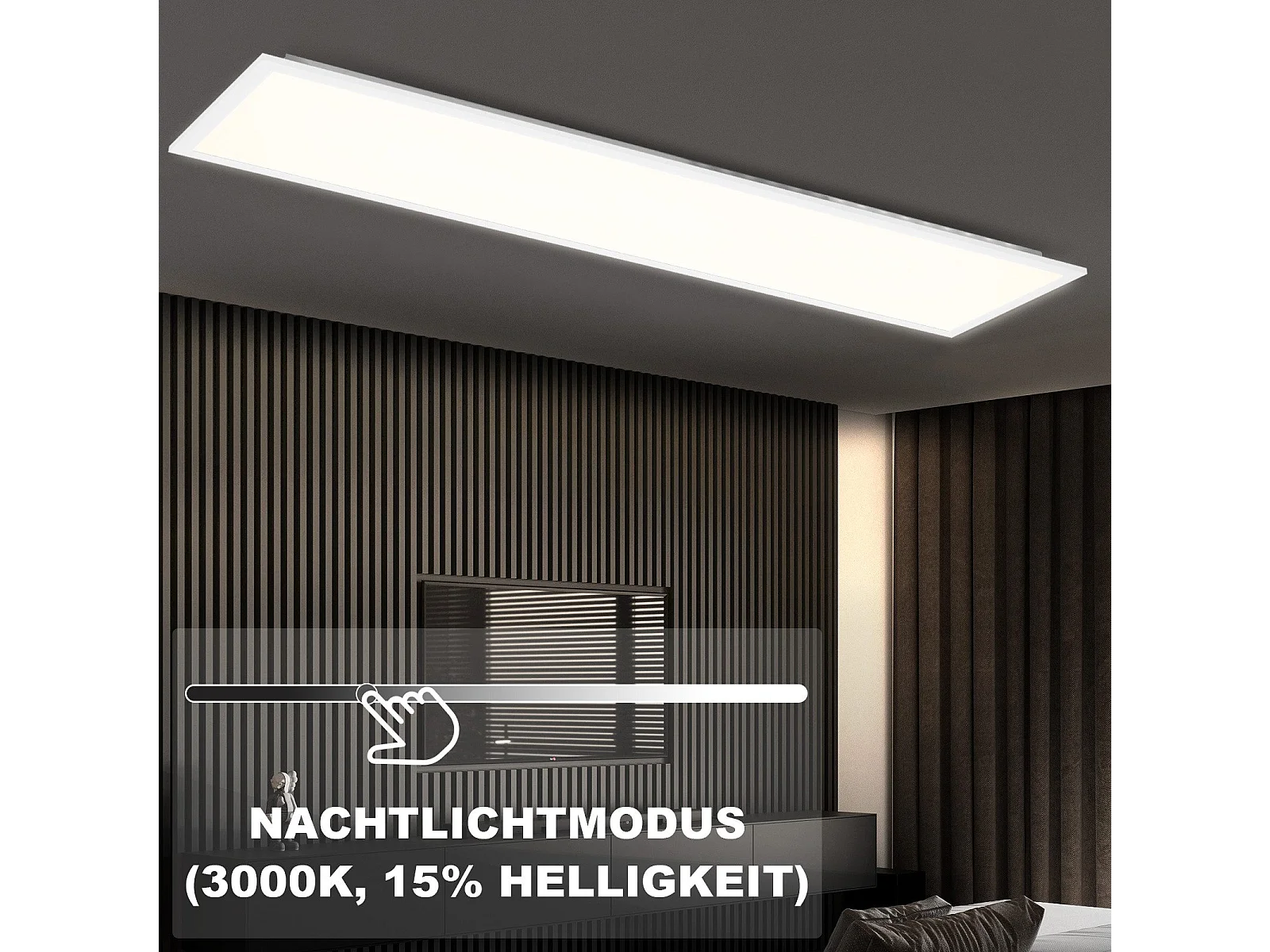 NETTLIFE LED-paneel 120 x 30 cm, dimbaar, plat plafondlicht, RGB-kleurveranderend, met afstandsbediening, 36 W, 3000 K-6500 K
