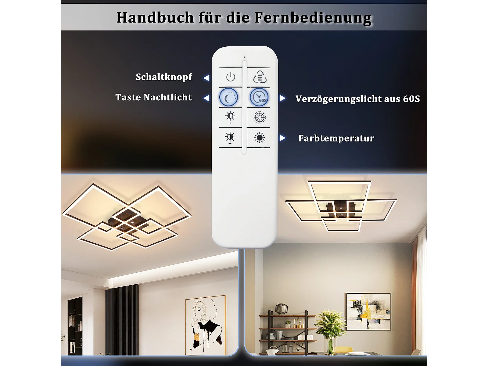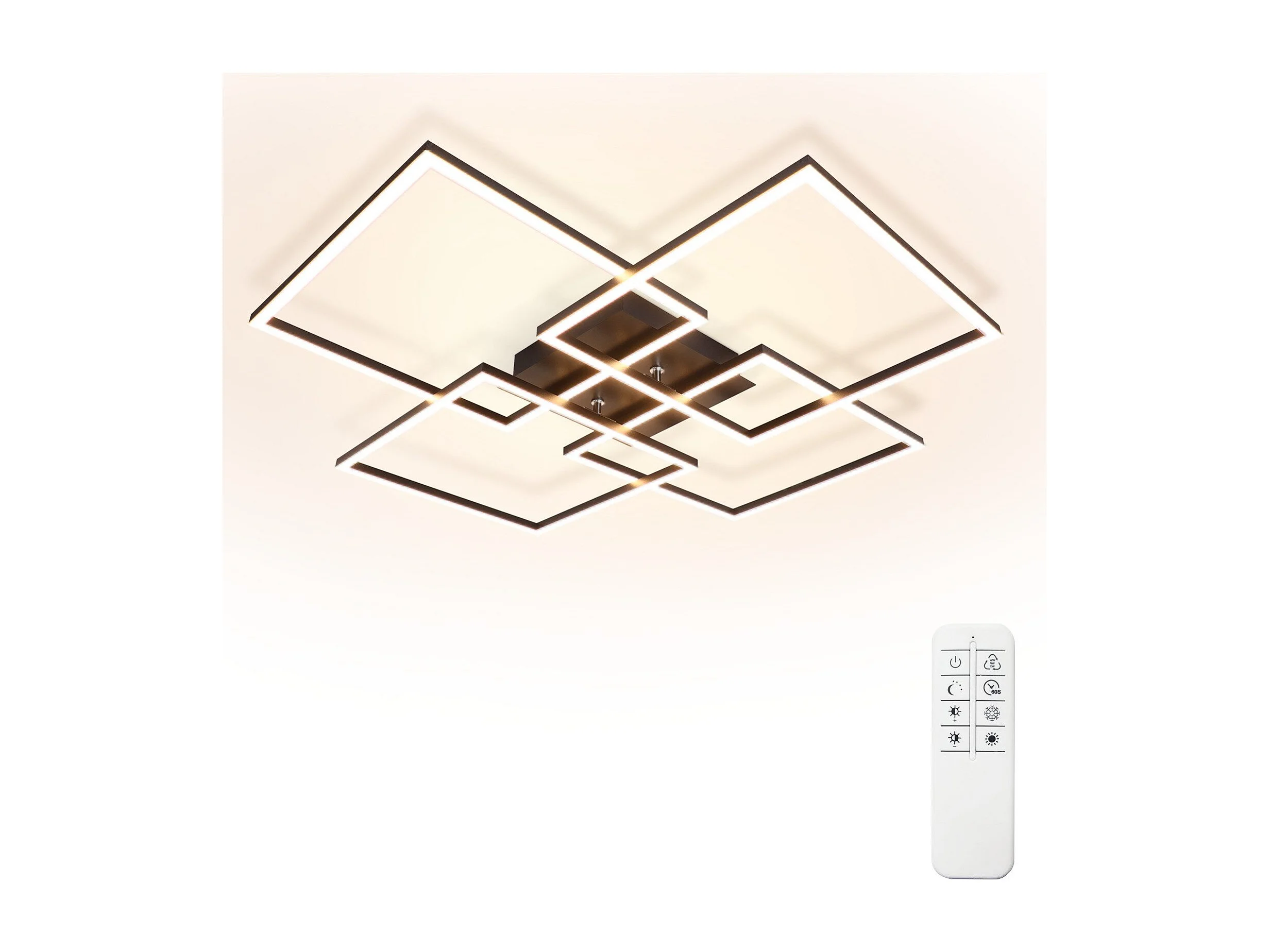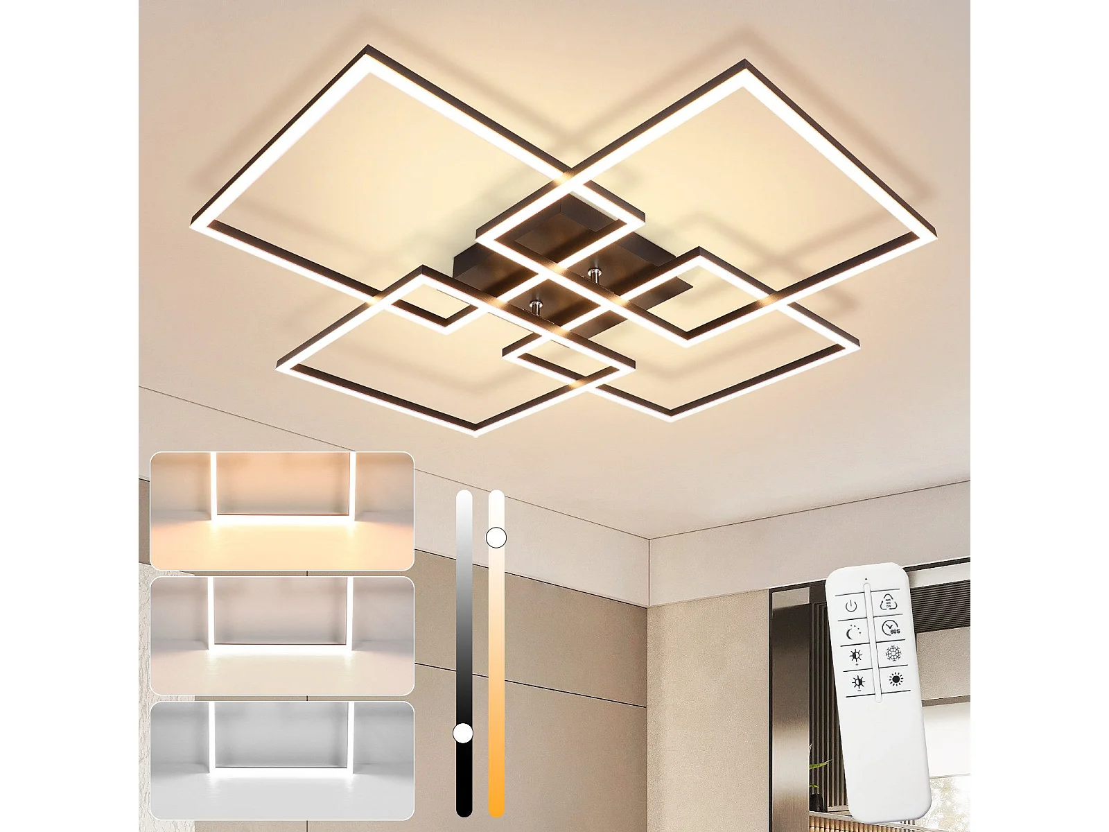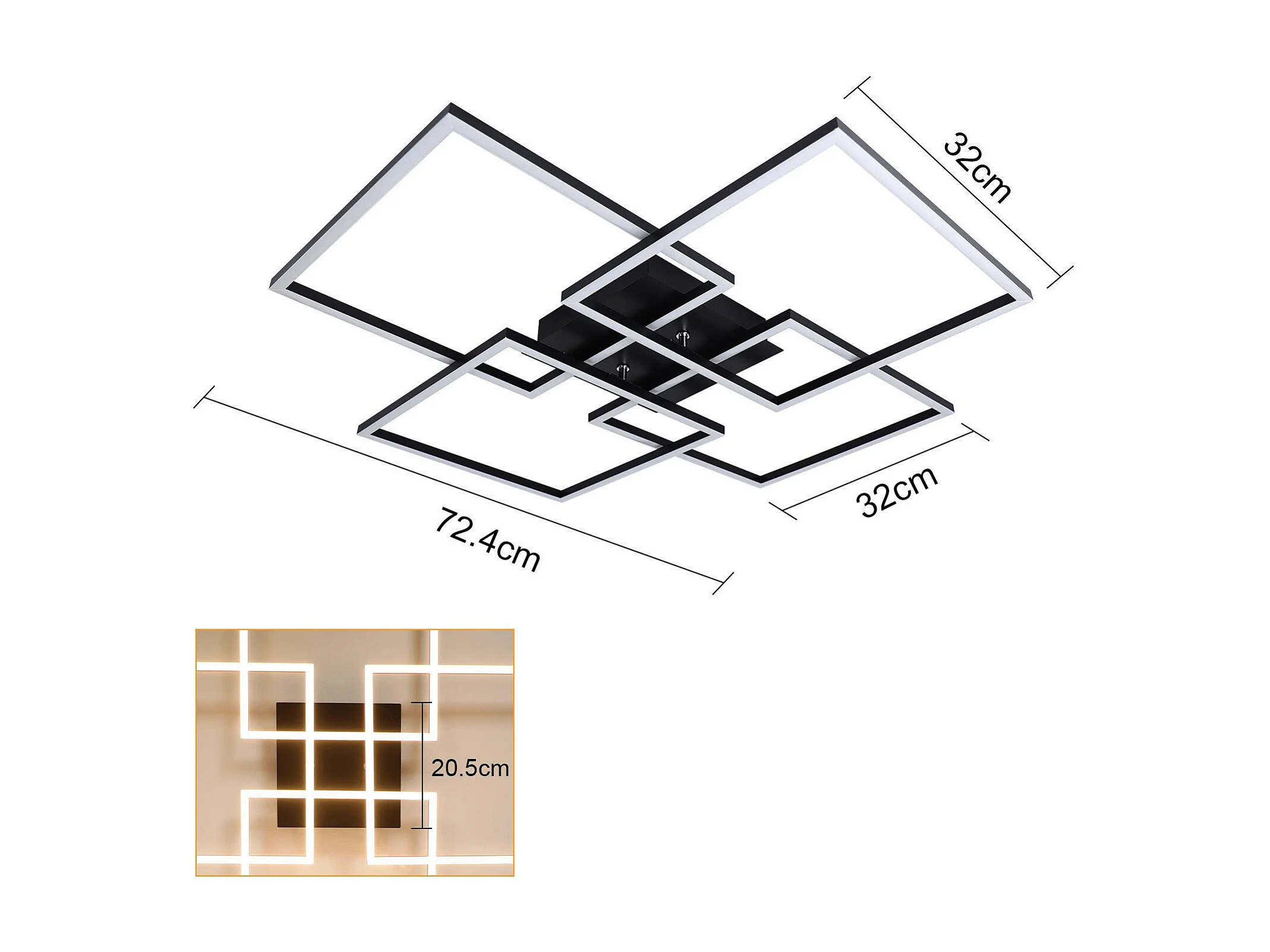 NETTLIFE Plafondlamp LED Vierkant 4 Lichts Zwart 3000-6500K Dimbaar met afstandsbediening Modern Plafondlamp 72cm voor Woonkamer | Keuken | Slaapkamer 48W