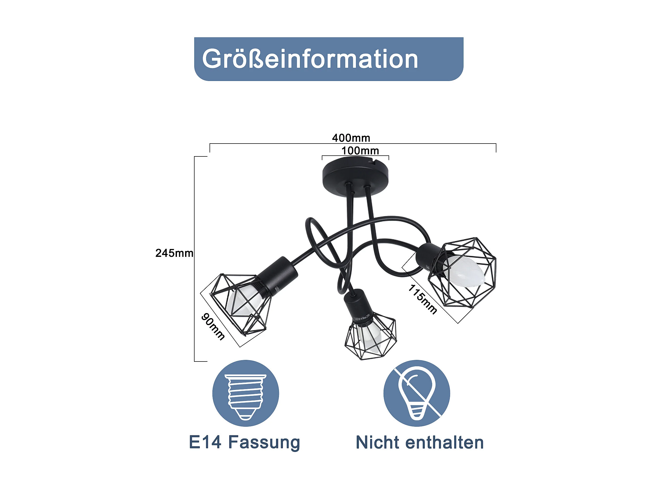 NETTLIFE Opbouwspot - 3 lichts - E14 - Moderne Plafondspot | rond Spotje - L 400 mm - Zwart - Keuken | Woonkamer | Slaapkamer