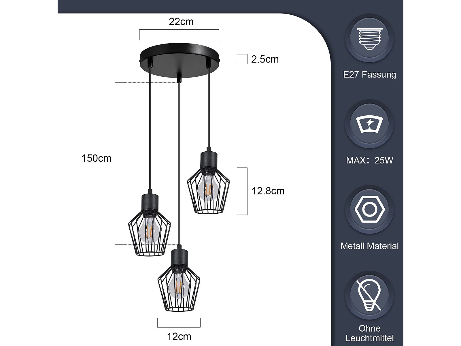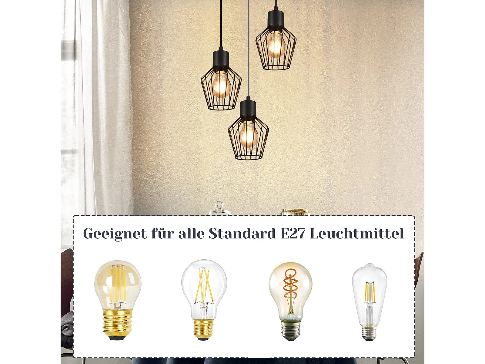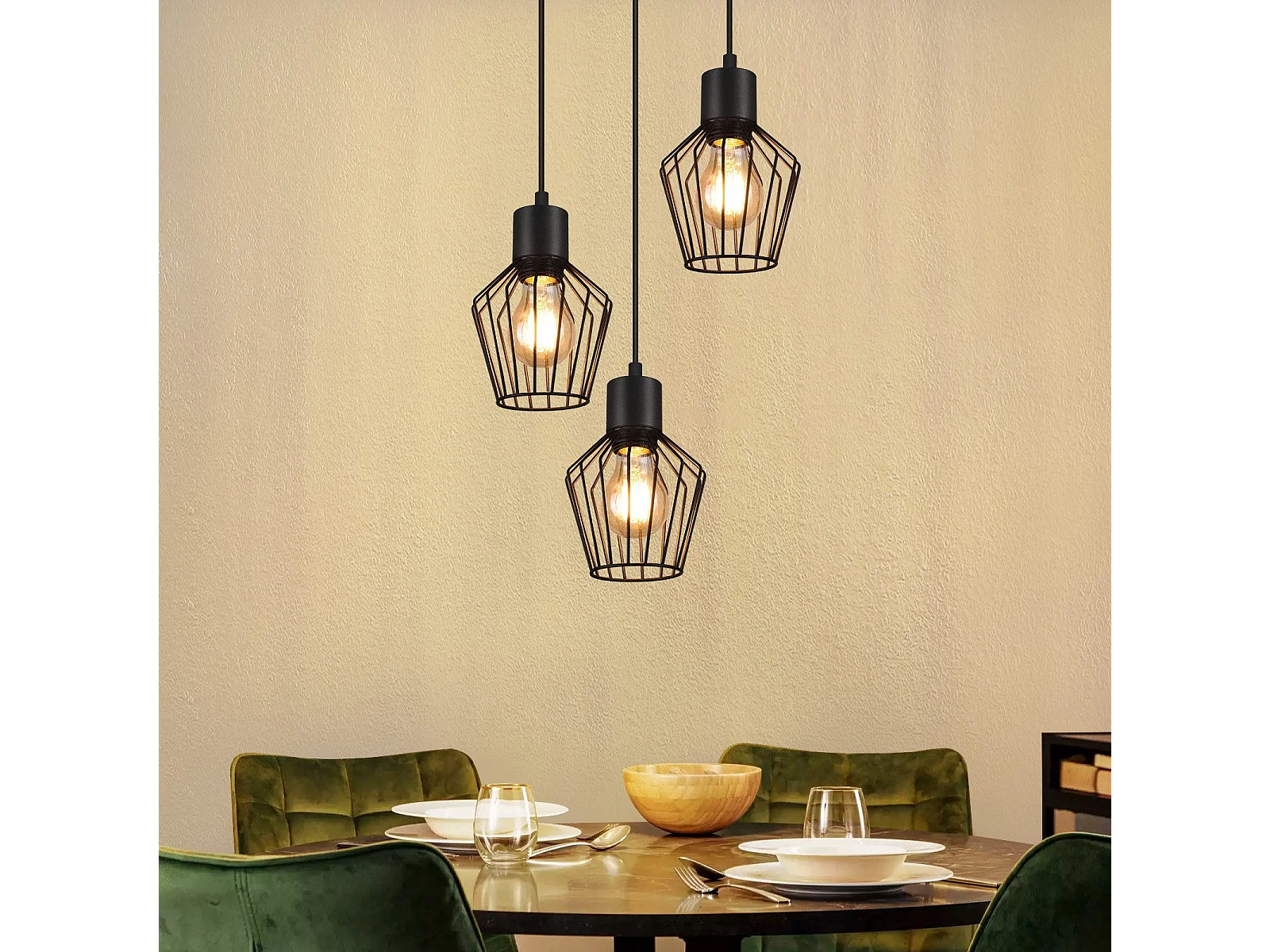 NETTLIFE Hanglamp E27 3-Lichts Zwart Metaal Vintage Pendellamp kooivorm Eettafel Pendellamp MAX.25W Retro Woonkamerlamp voor Keuken | Slaapkamer | Cafe | Woonkamer