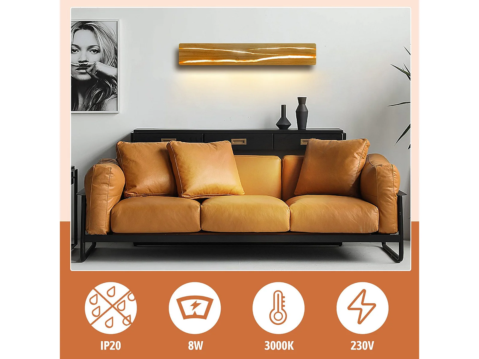 NETTLIFE Wandapparaat met LED, moderne interieurhouten wandapparaat voor gang, 3000K warm wit, 50 cm, indirecte woonkamerlamp, 8W.