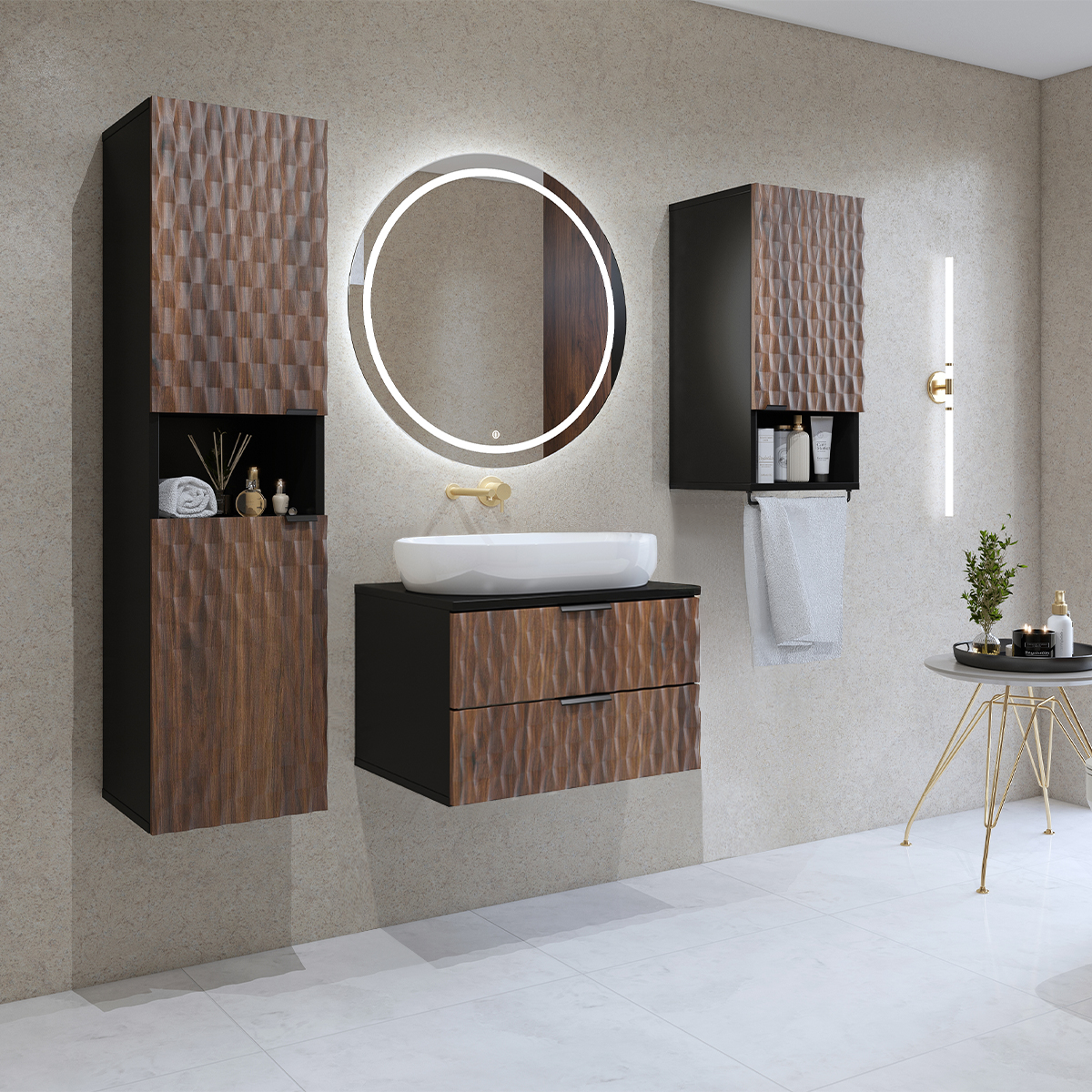 Nevia Hout en Zwart 60 cm badmeubel en kastenset