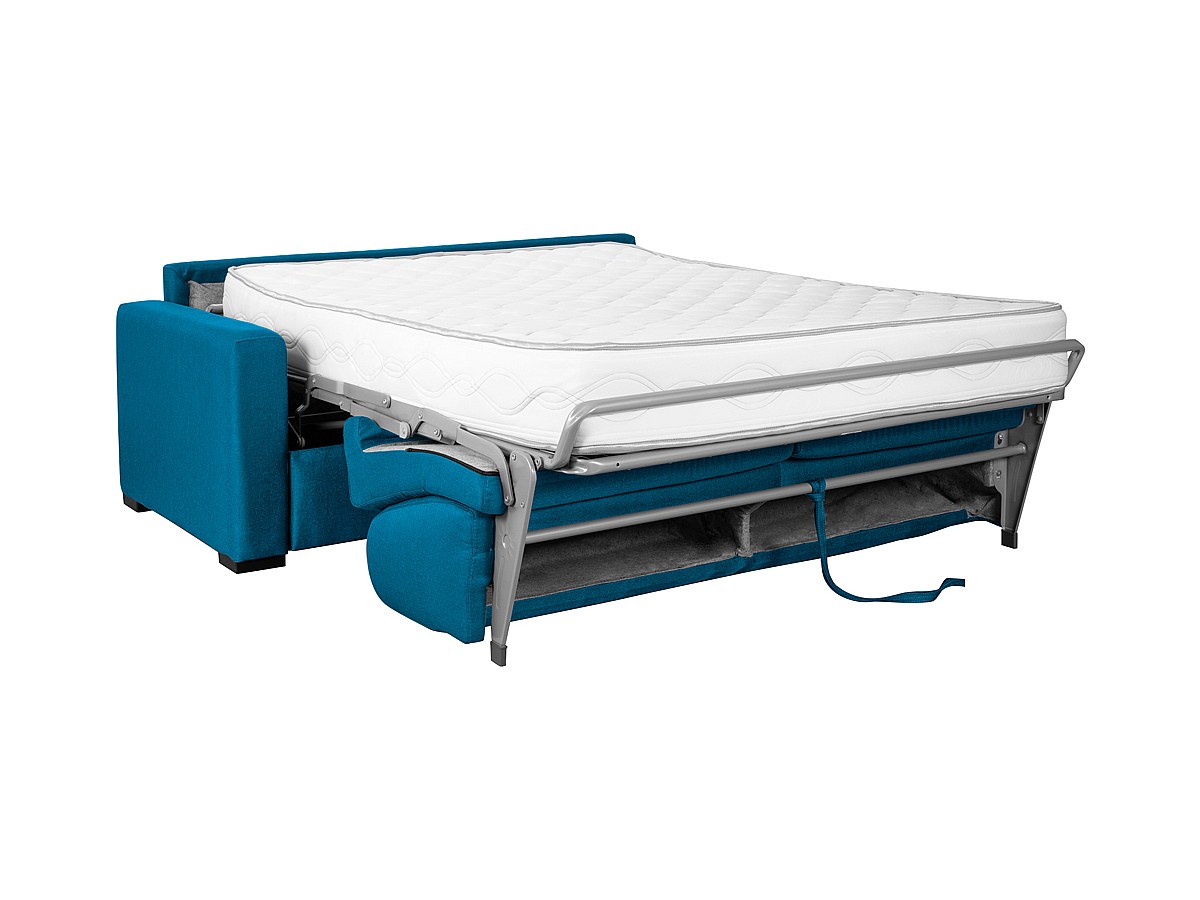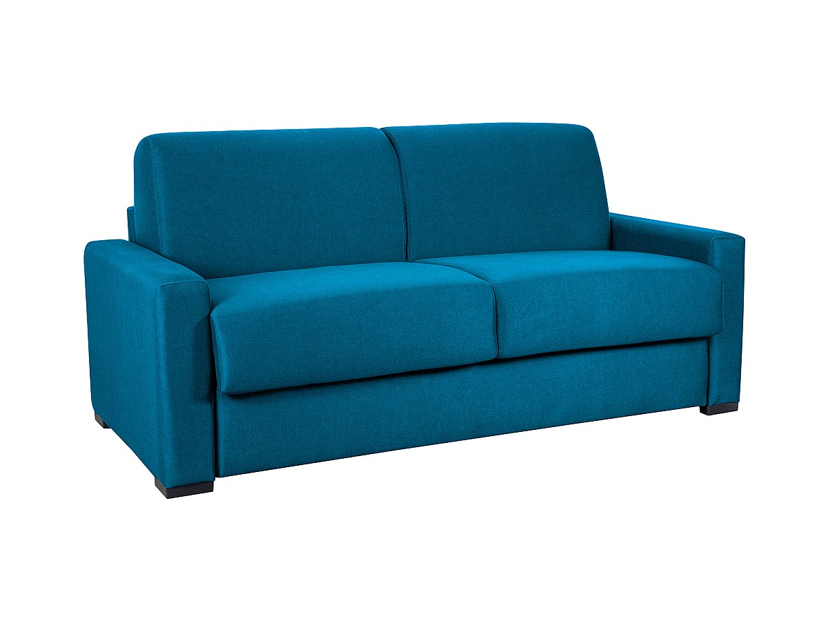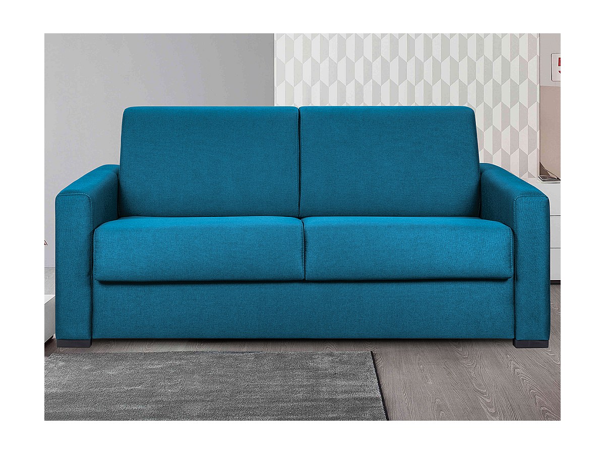 Driepersoons slaapbank van stof CALITO II - Blauw - Slaapafmeting 140 cm - Matras 22 cm