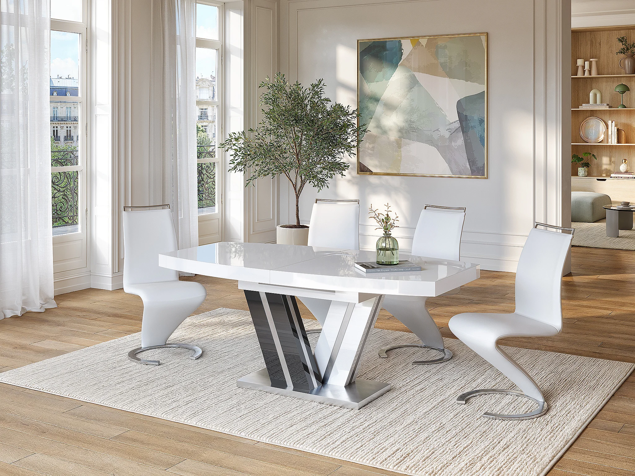 Uitschuifbare eettafel NOAMI II - 6 tot 8 personen - Gelakt mdf grijs en wit