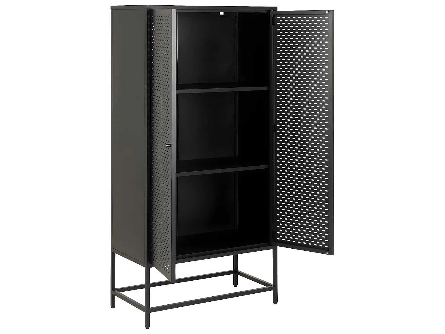 Newbor vitrinekast met 2 metalen gaasdeuren zwart.